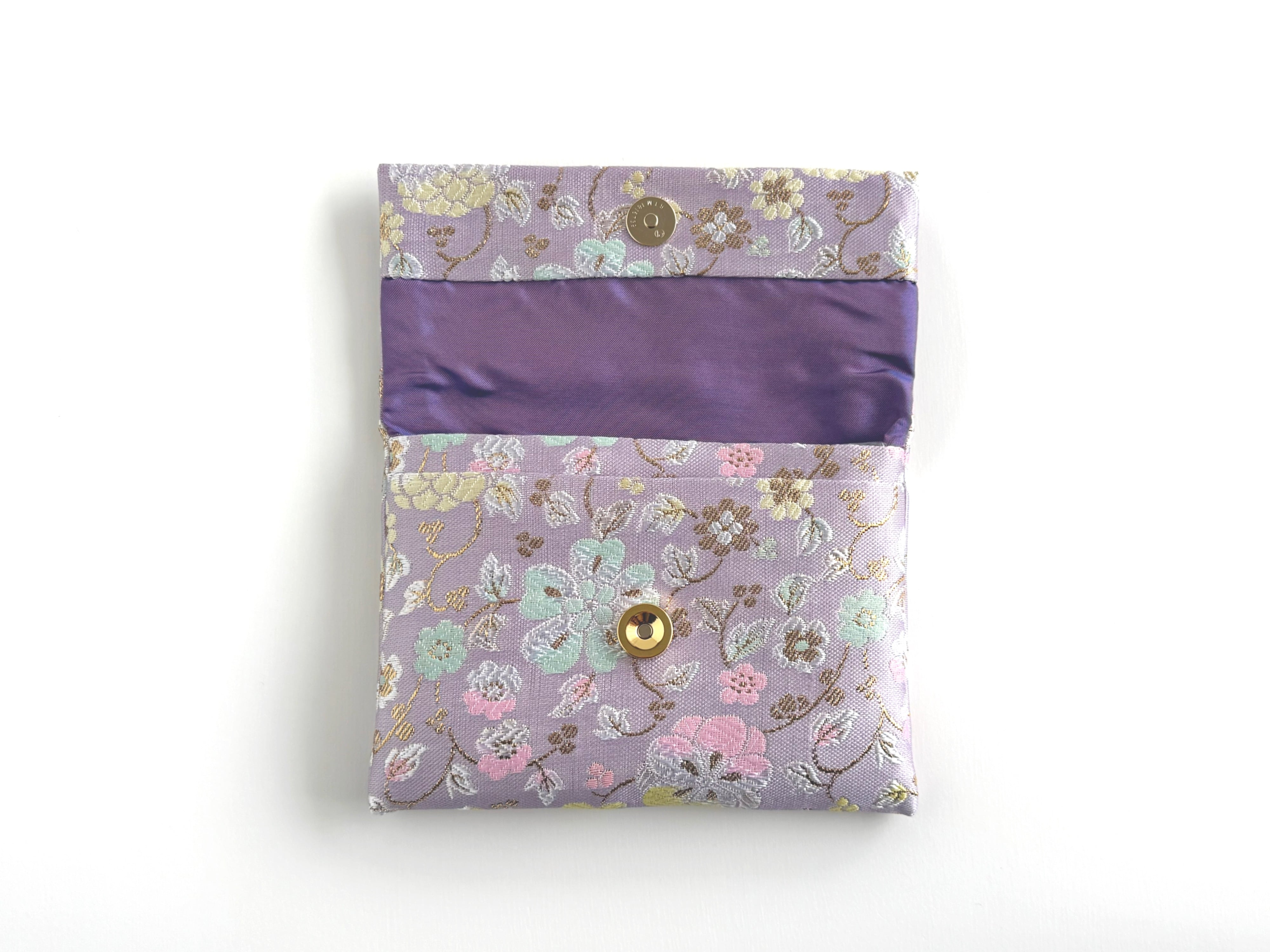 ✴︎✴︎アウトレット✴︎✴︎ お念珠入れ ポケット付き 高級金襴…薄紫の華《送料無料》