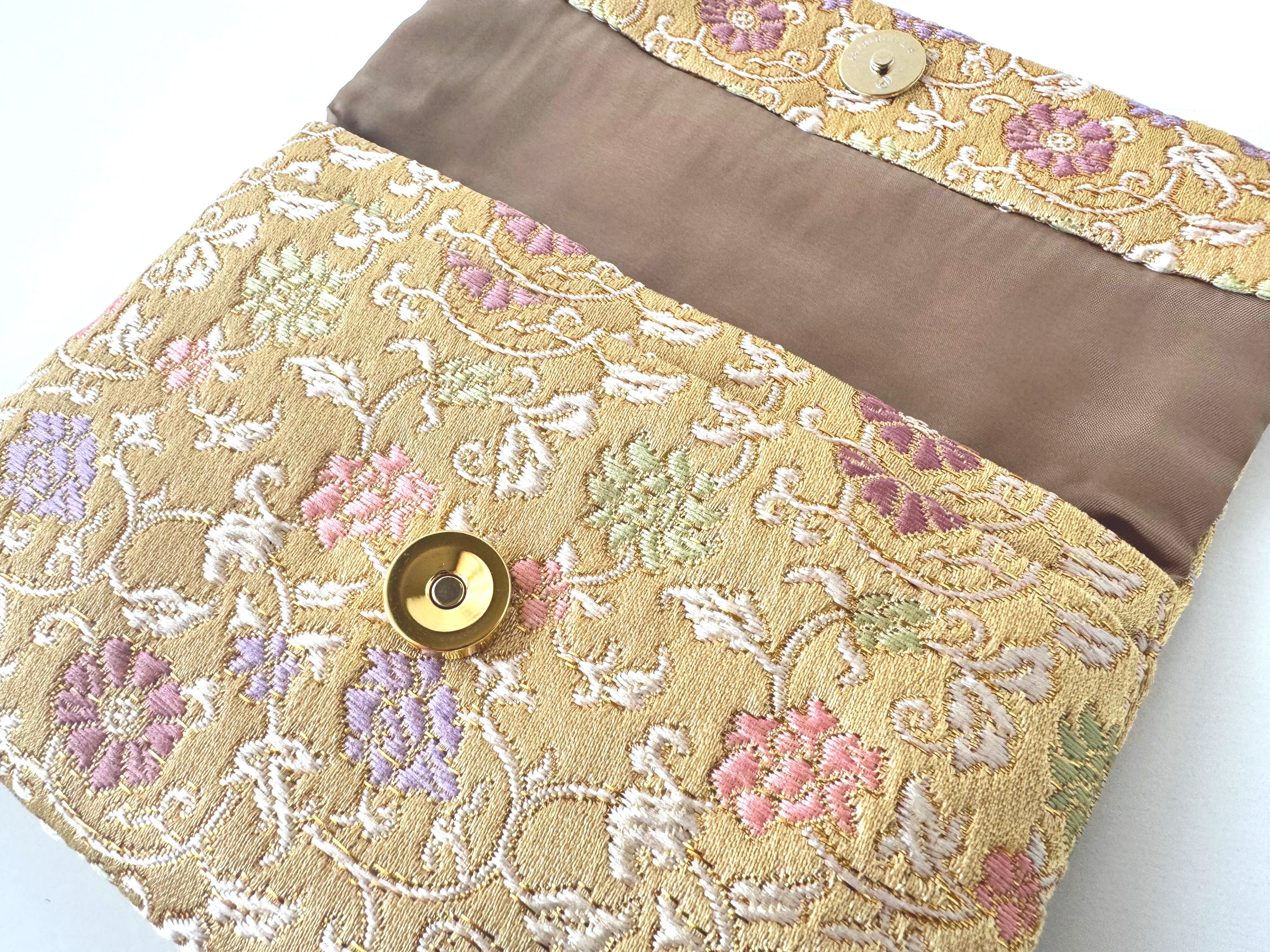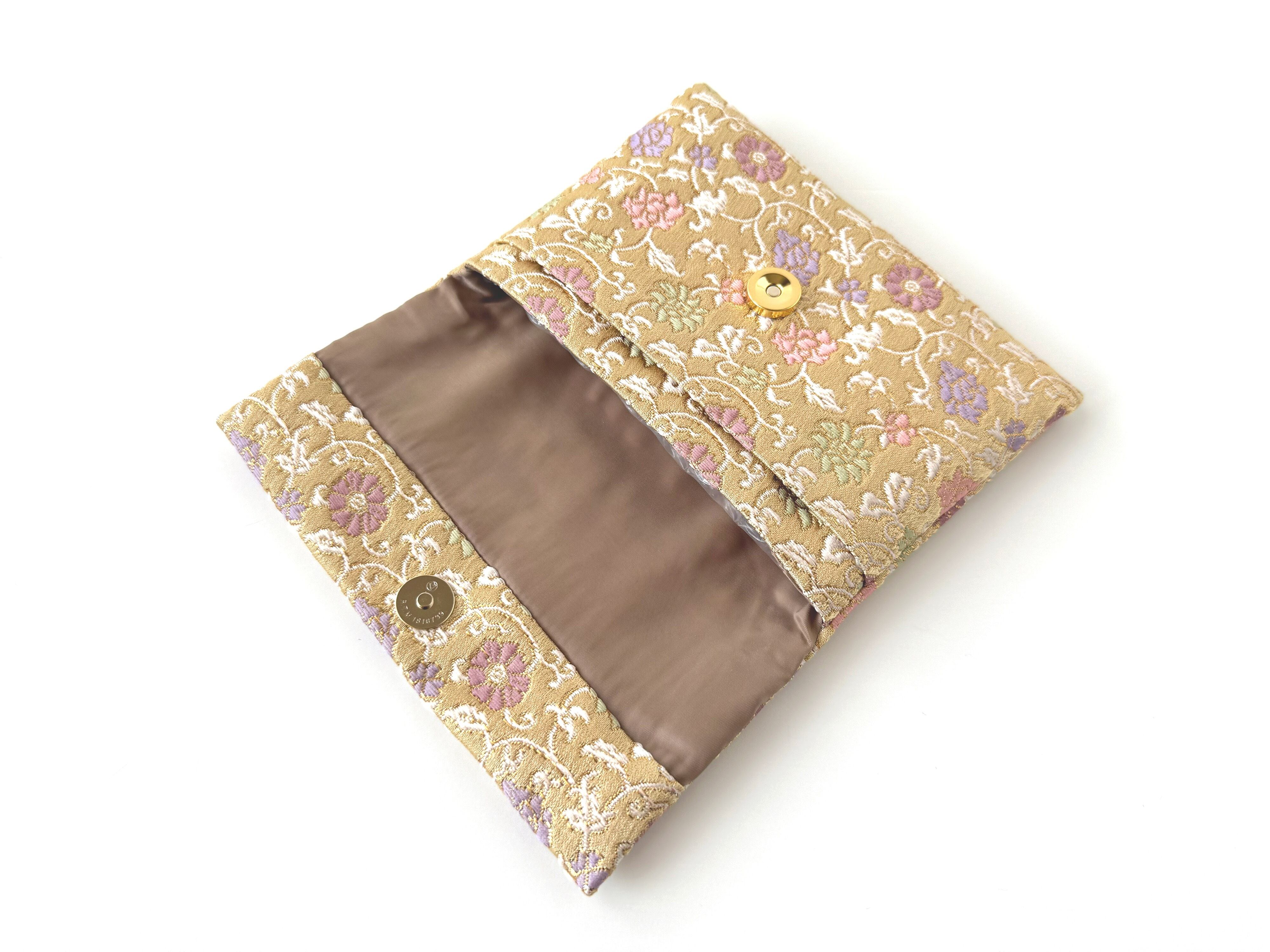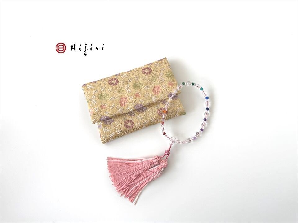 再販‼︎ お念珠入れ ポケット付き 高級金襴…華唐草のベージュ《送料無料》