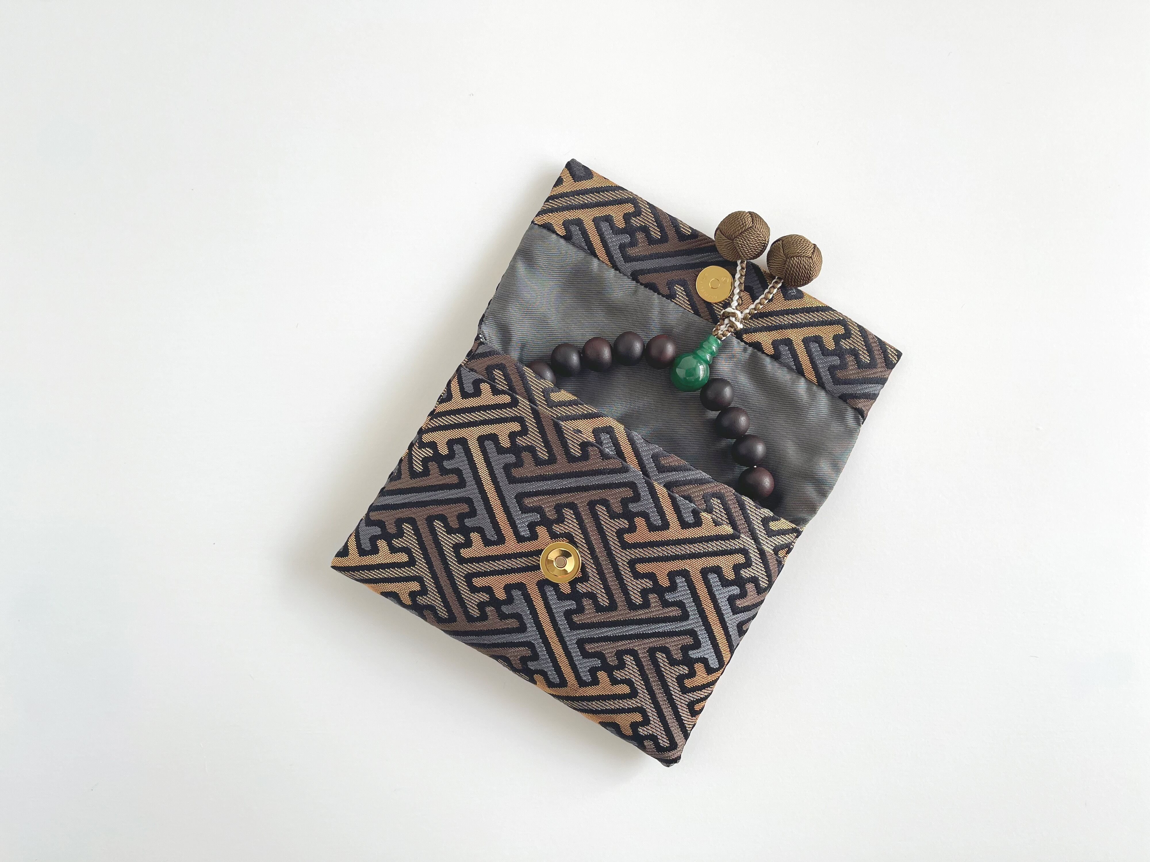 再販‼︎ お念珠入れ ポケット付き 高級金襴…クールな黒《送料無料》