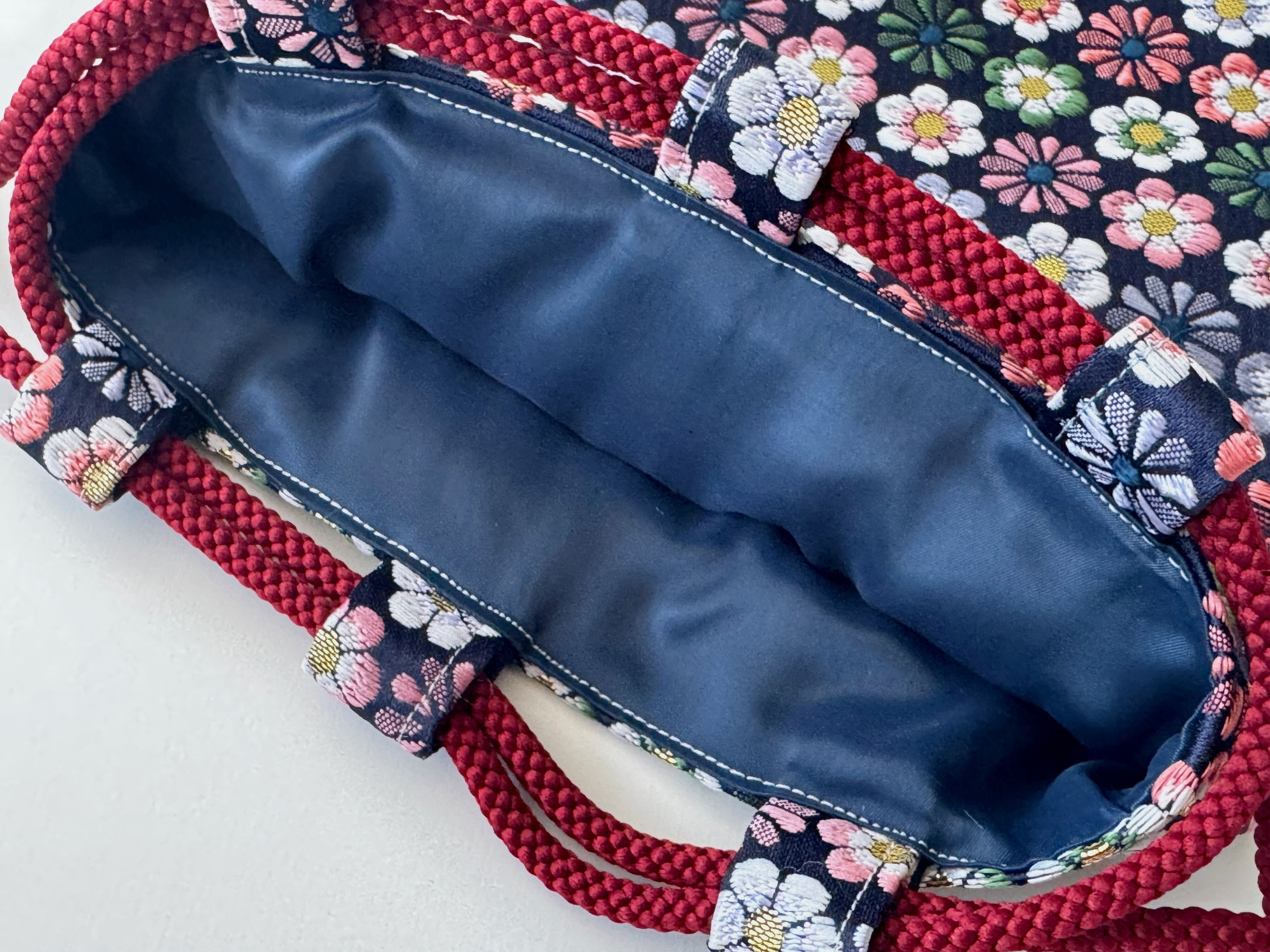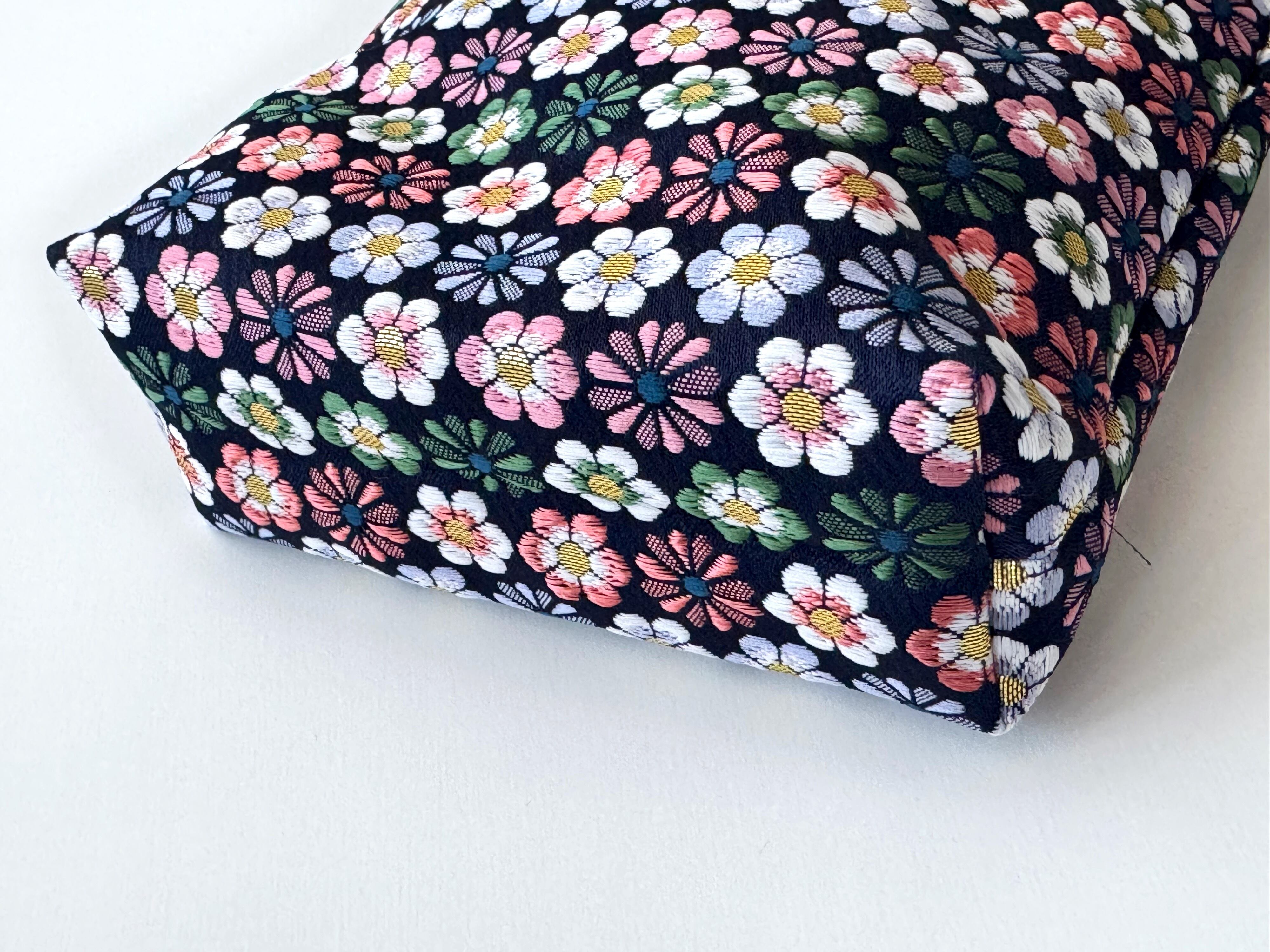 こちらは紺色に絨毯のようにお花が散りばめられた可愛らしい作品になっております。