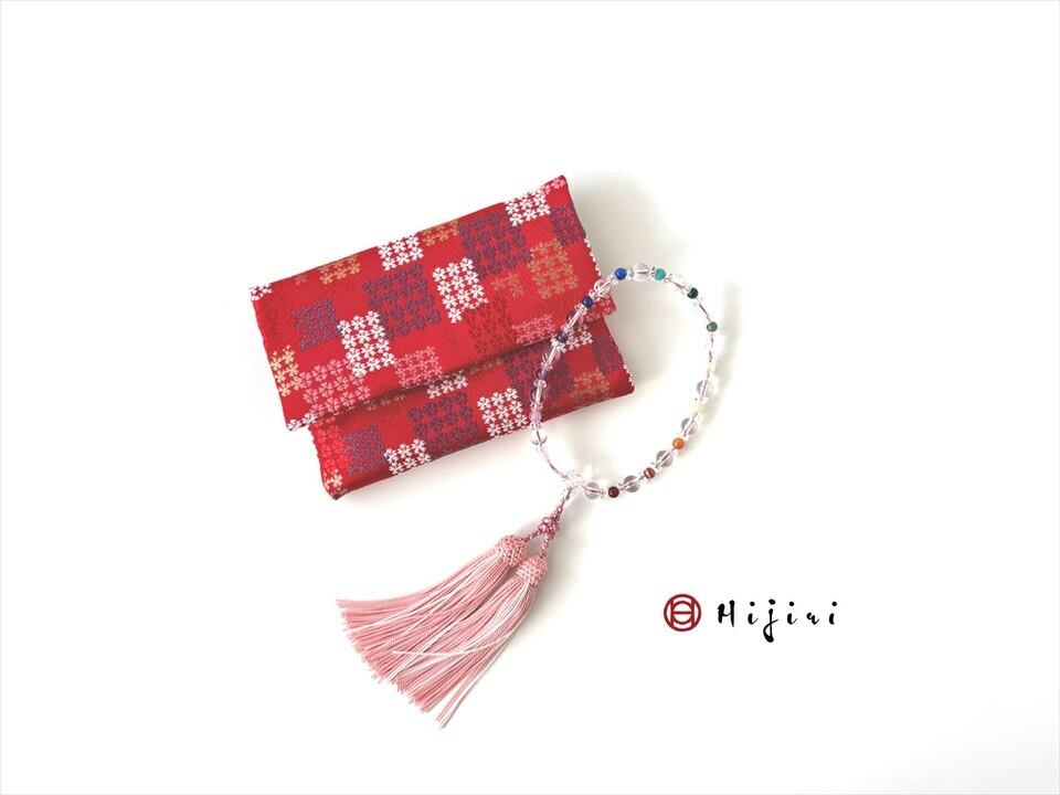 再販‼︎ お念珠入れ ポケット付き 高級金襴…小花の石畳《送料無料》