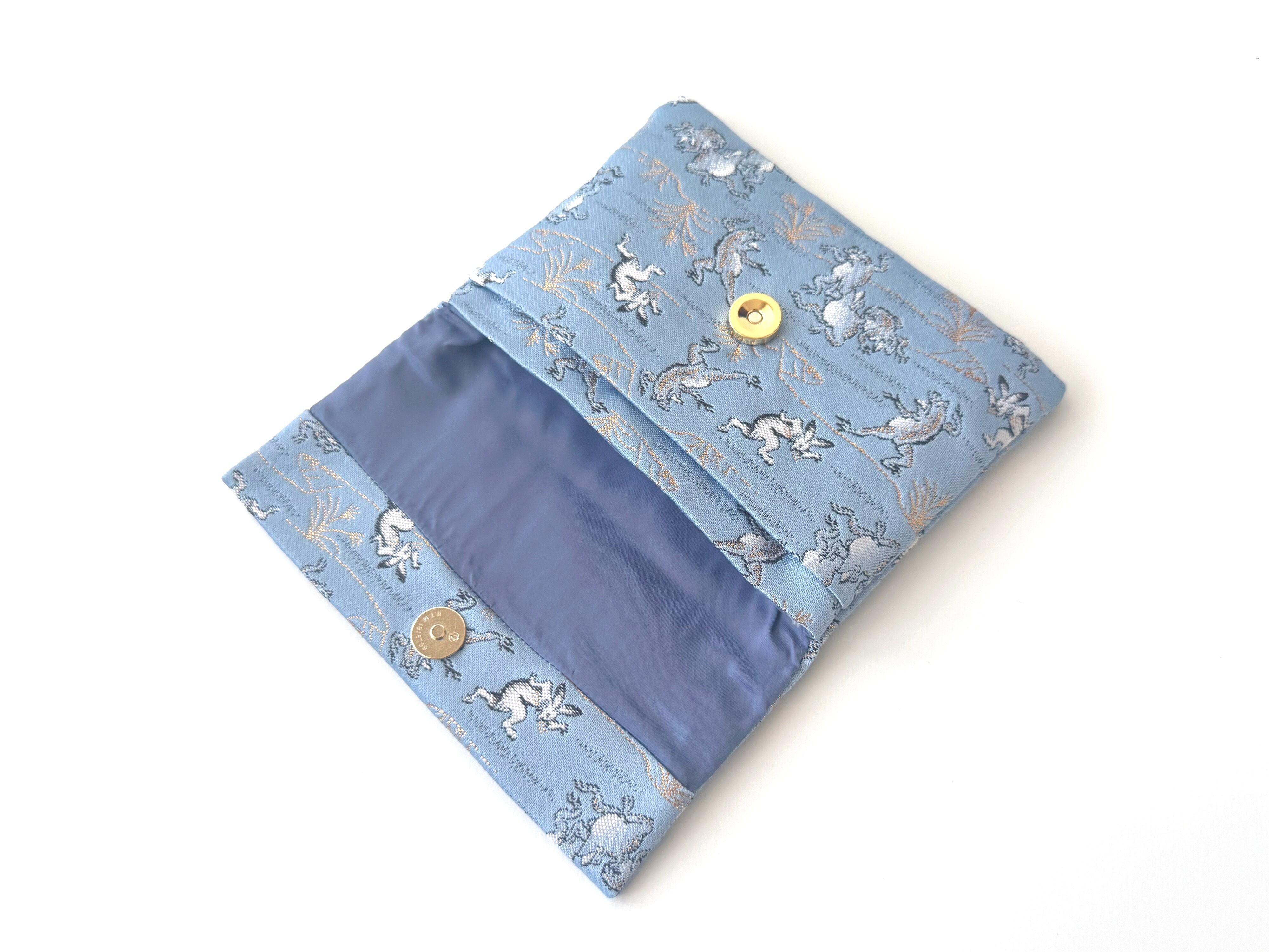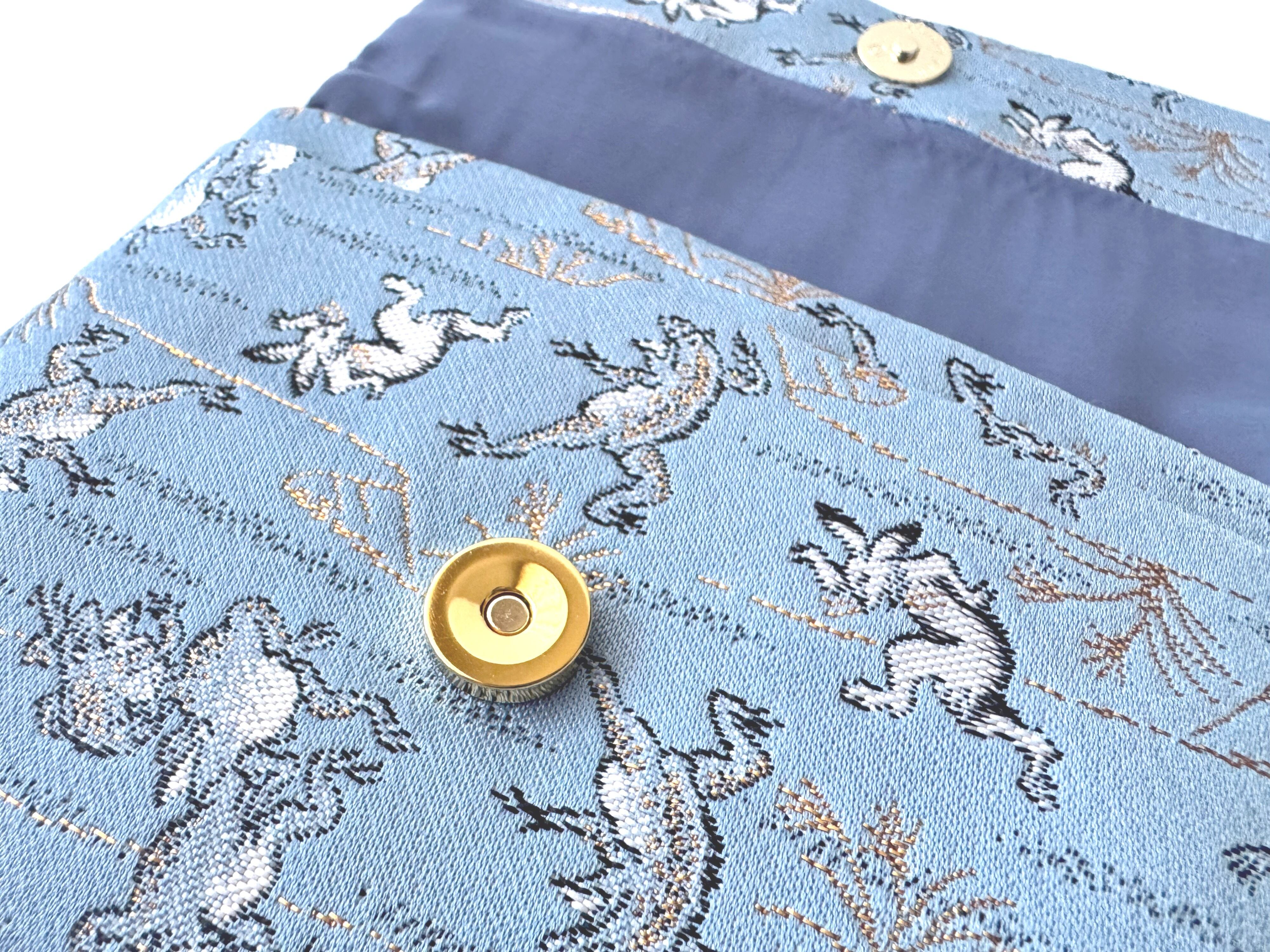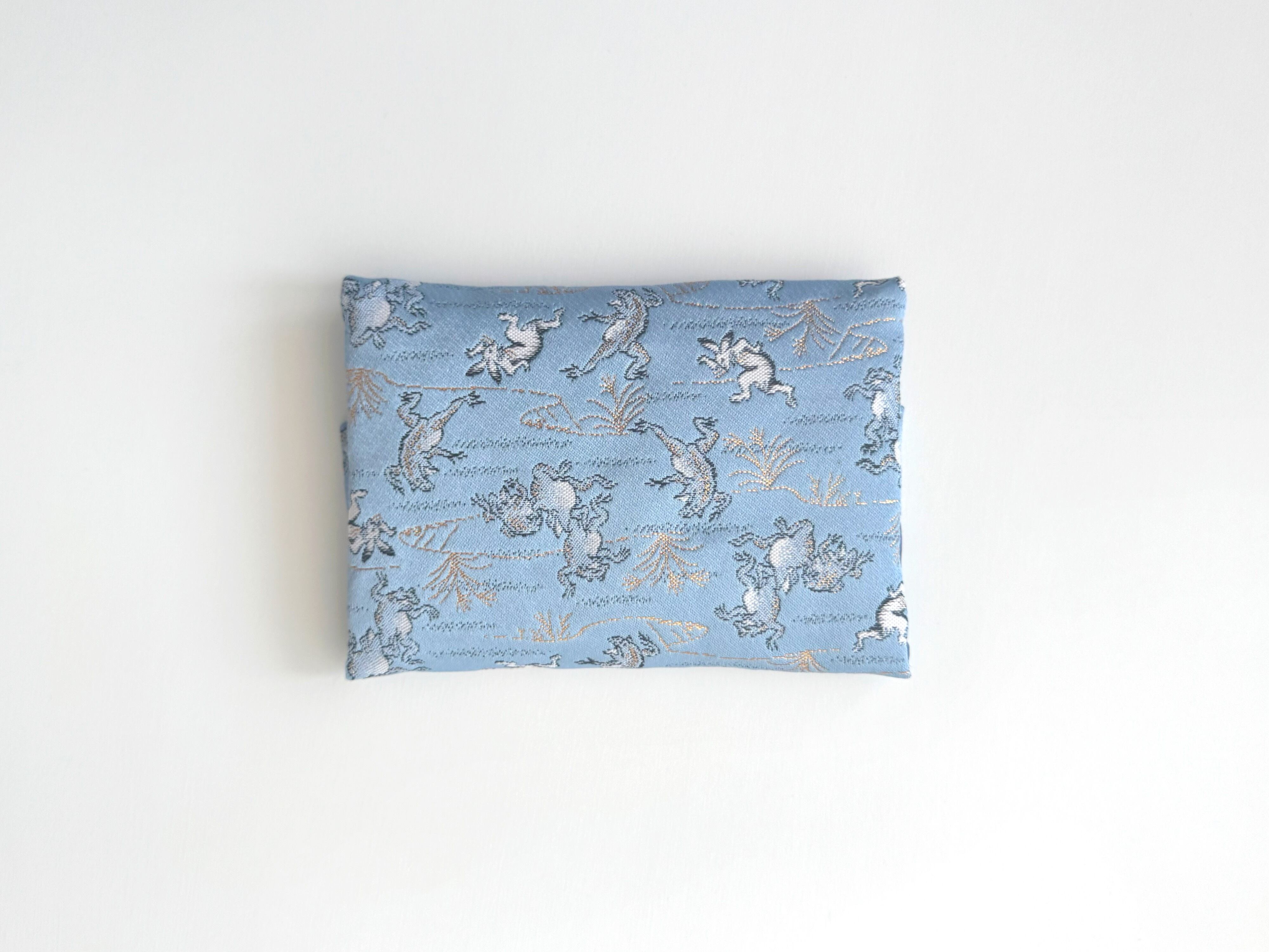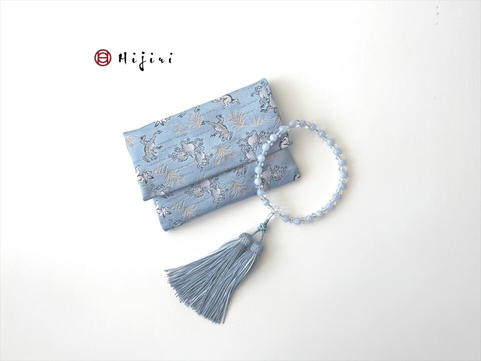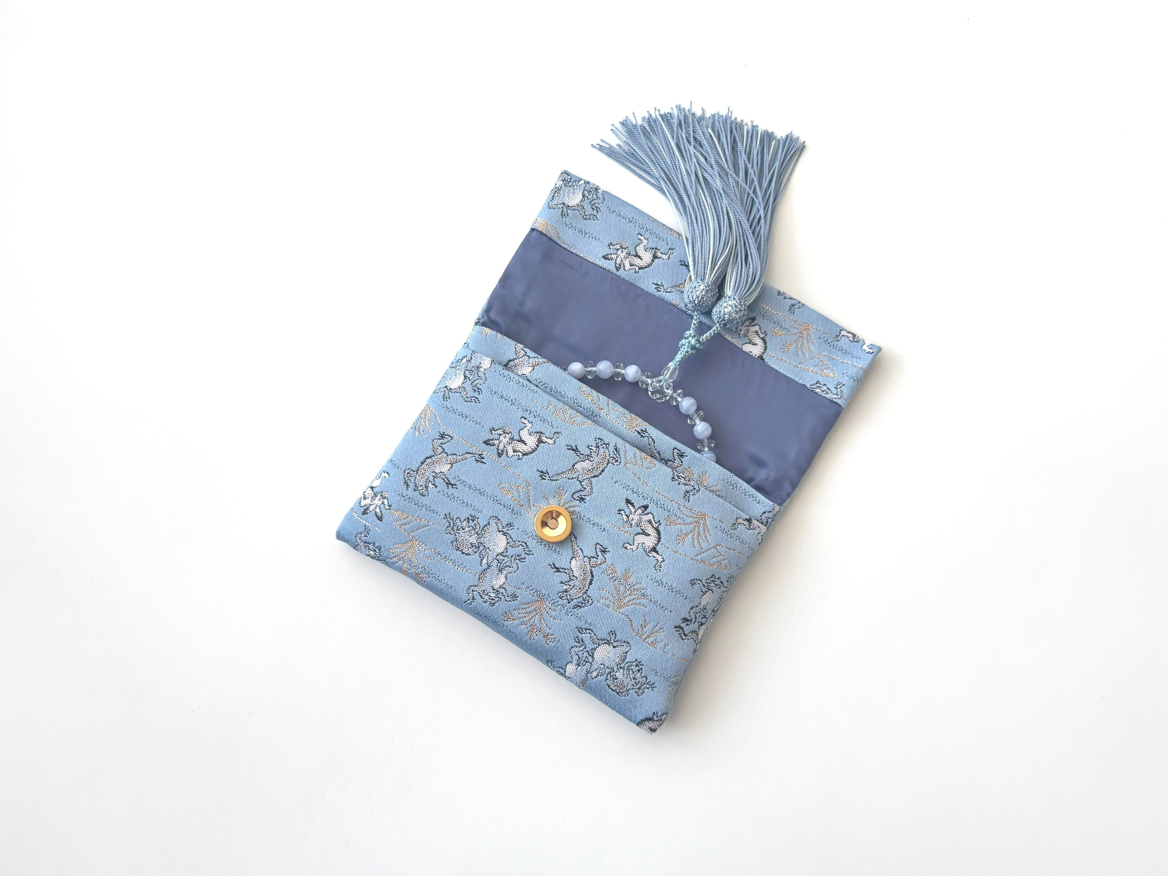 再販‼︎ お念珠入れ ポケット付き 高級金襴…水色の鳥獣戯画《送料無料》