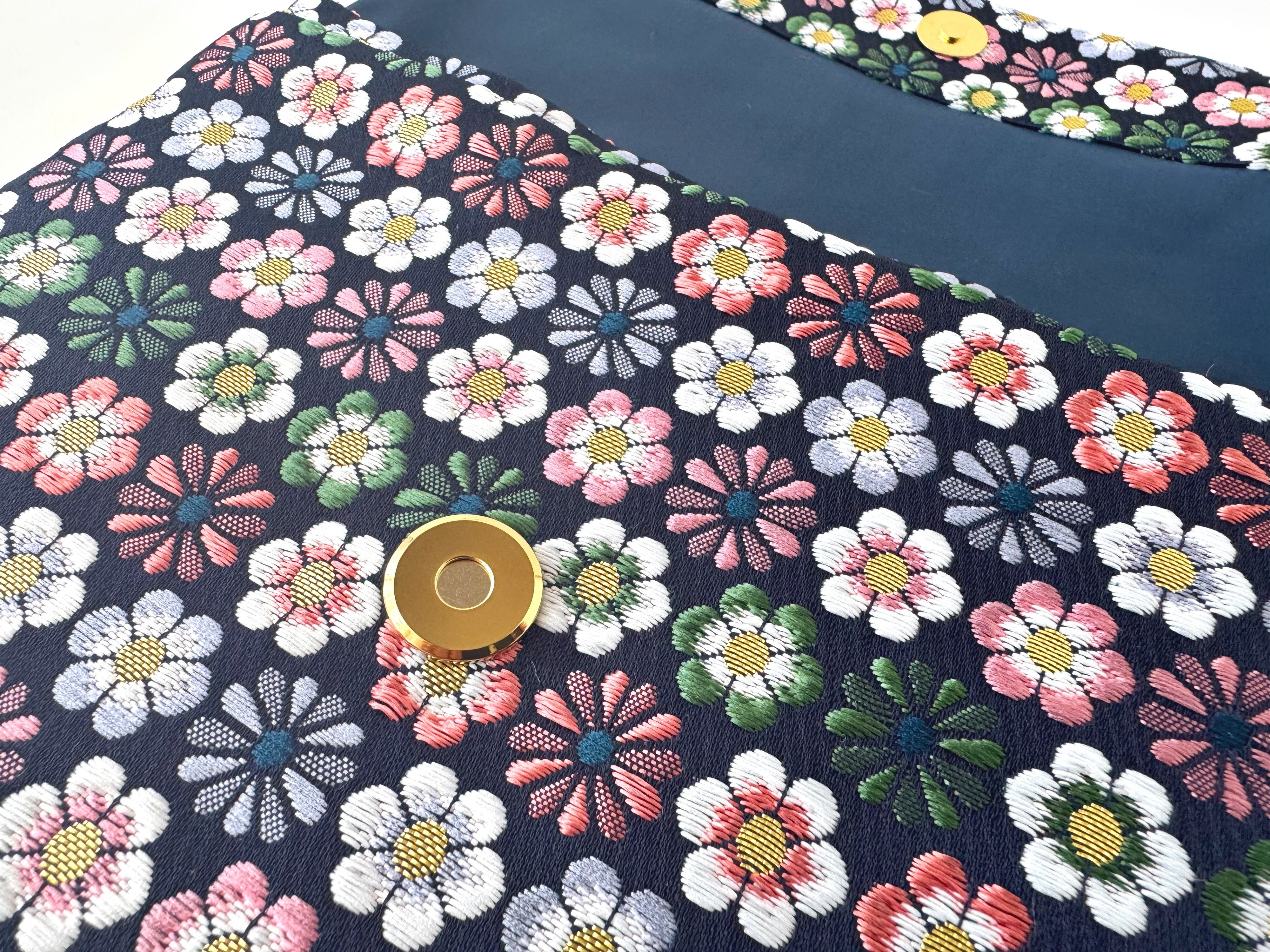 こちらは紺色に絨毯のようにお花が散りばめられた可愛らしい作品になっております。