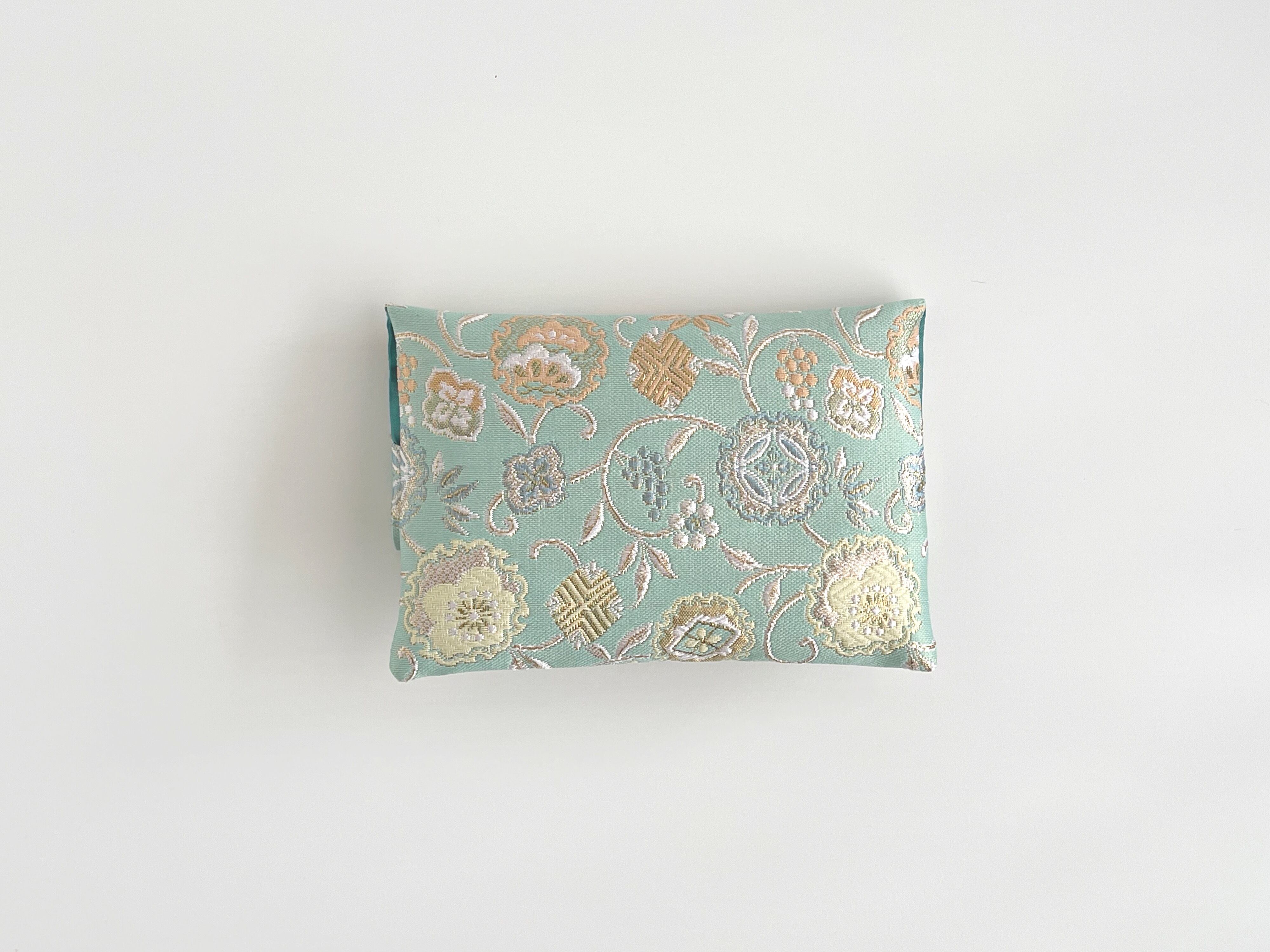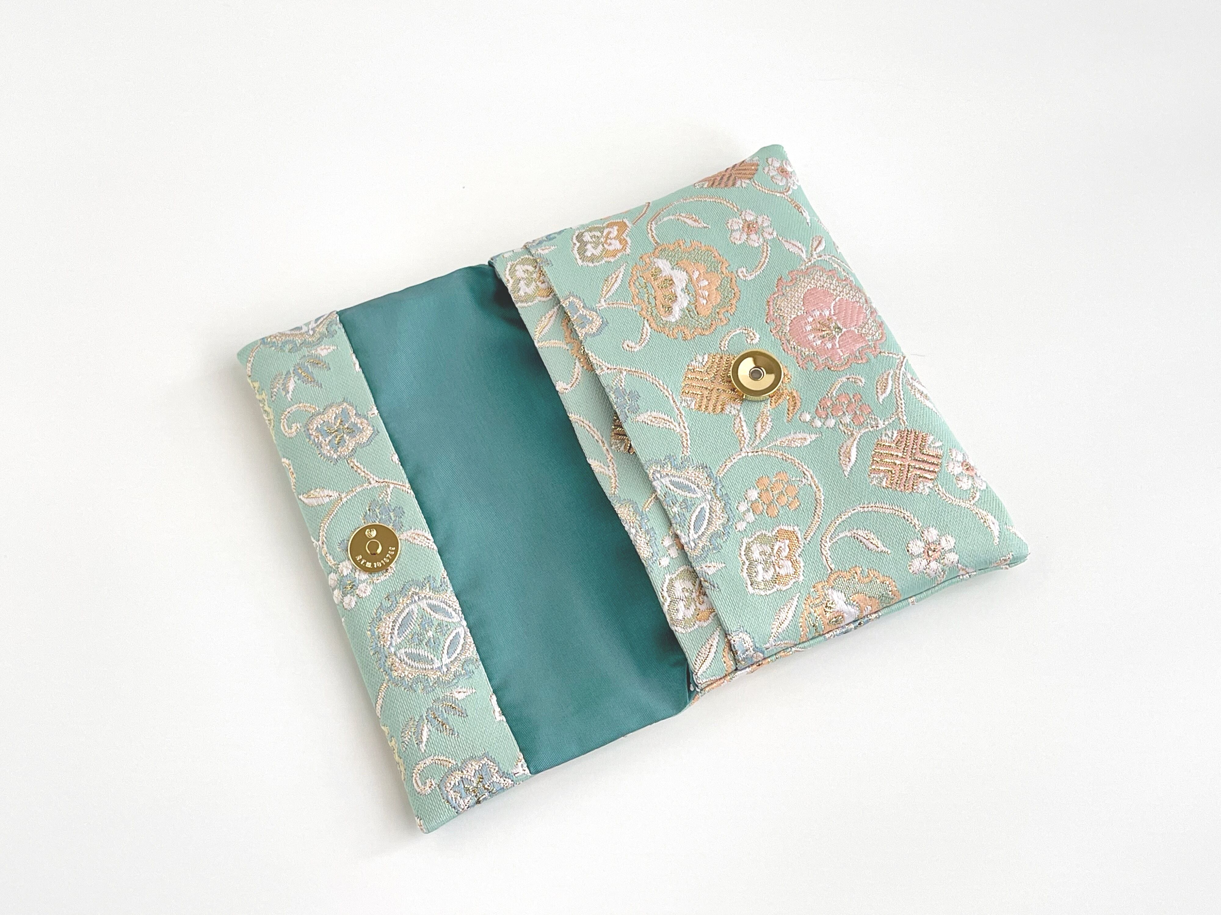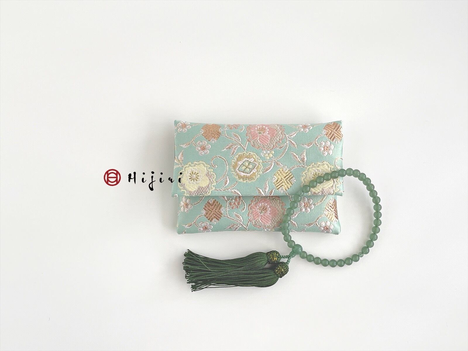 再販‼︎ お念珠入れ ポケット付き 高級金襴…雪輪緑《送料無料》