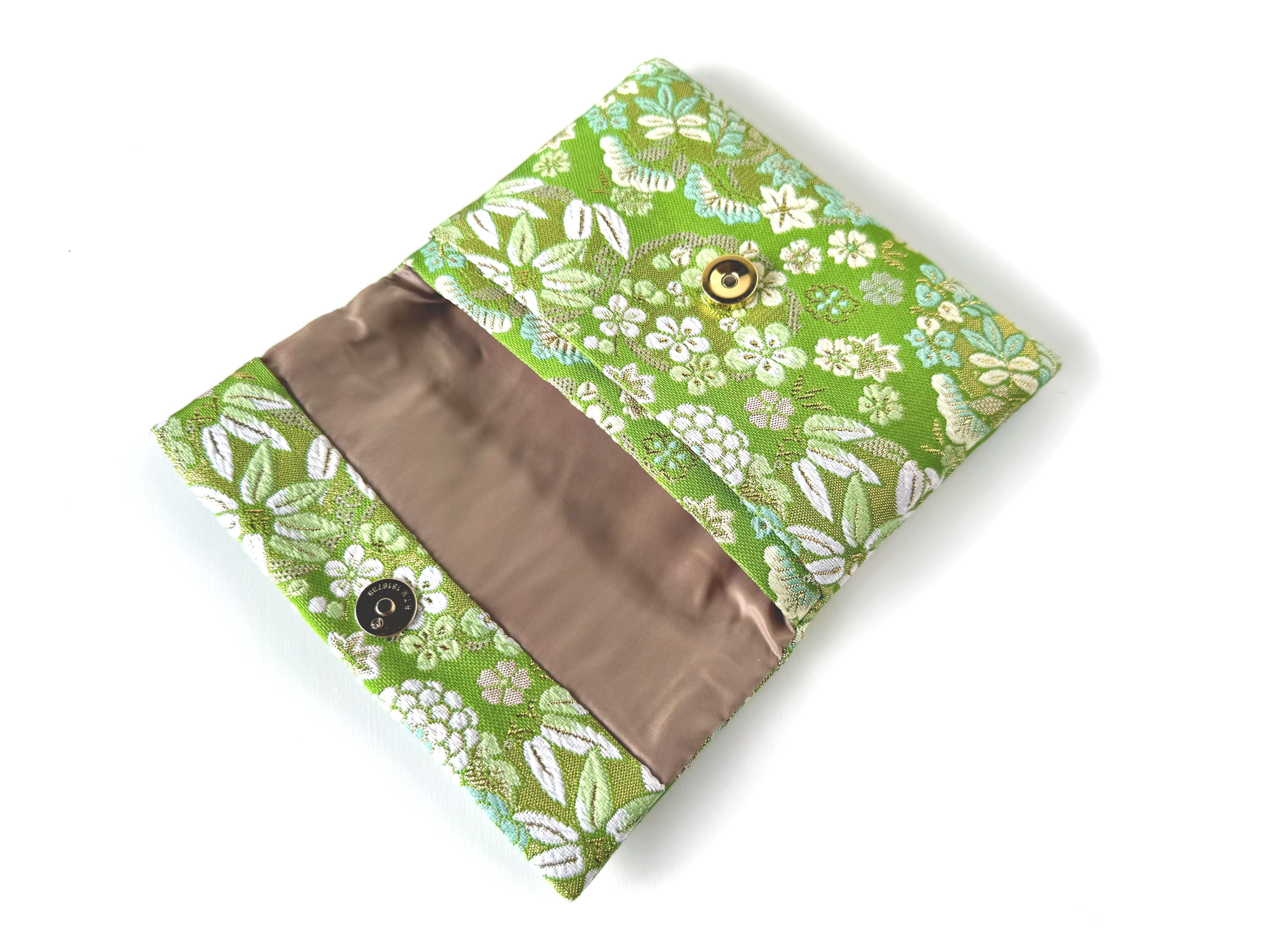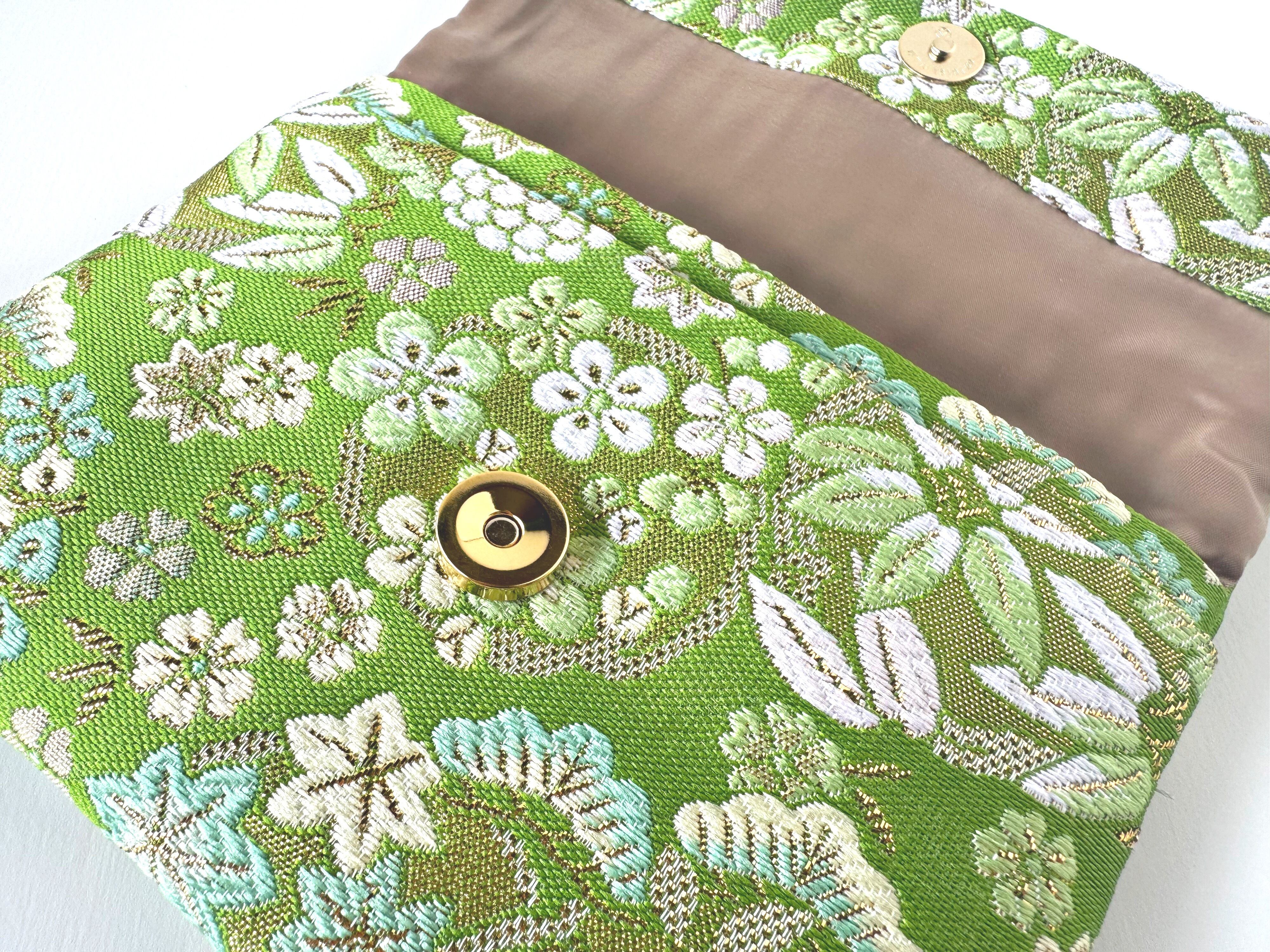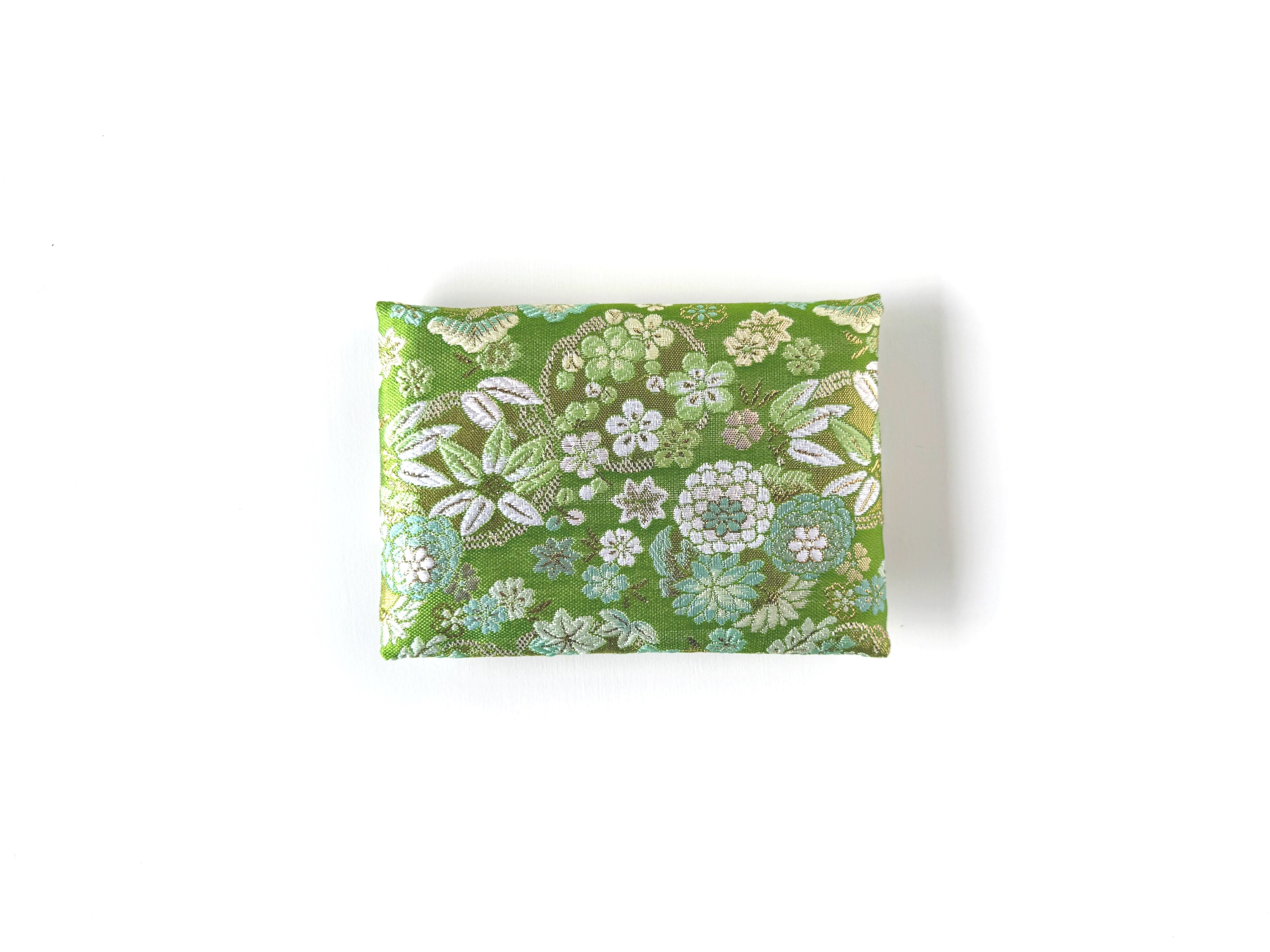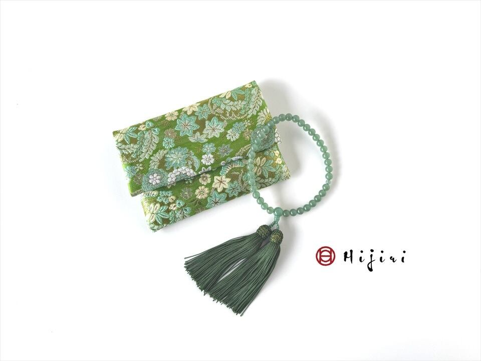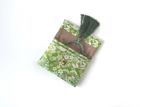 再販‼︎ お念珠入れ ポケット付き 高級金襴…緑の花《送料無料》