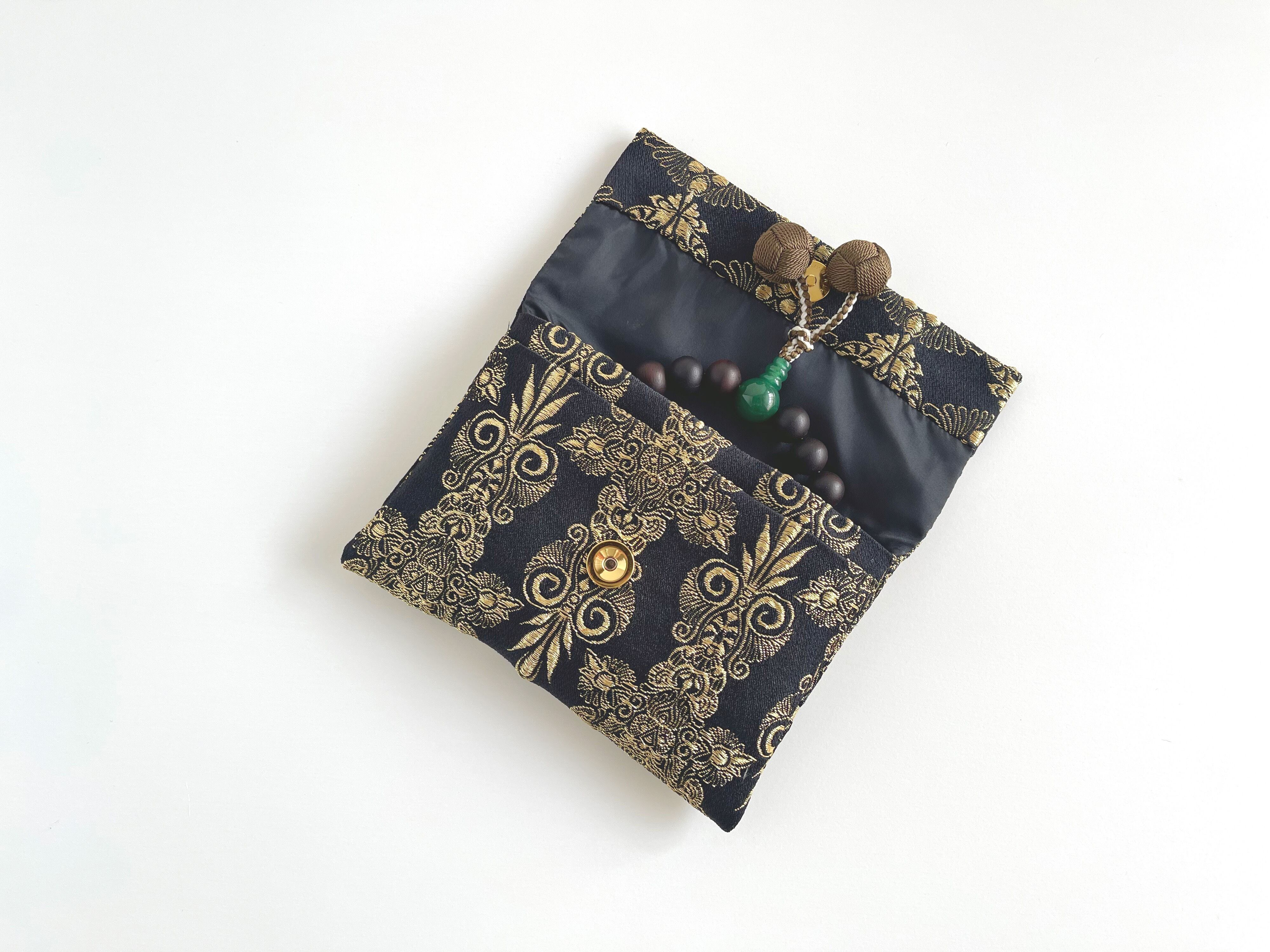 再販‼︎ お念珠入れ ポケット付き 高級金襴…ゴシック黒金《送料無料》