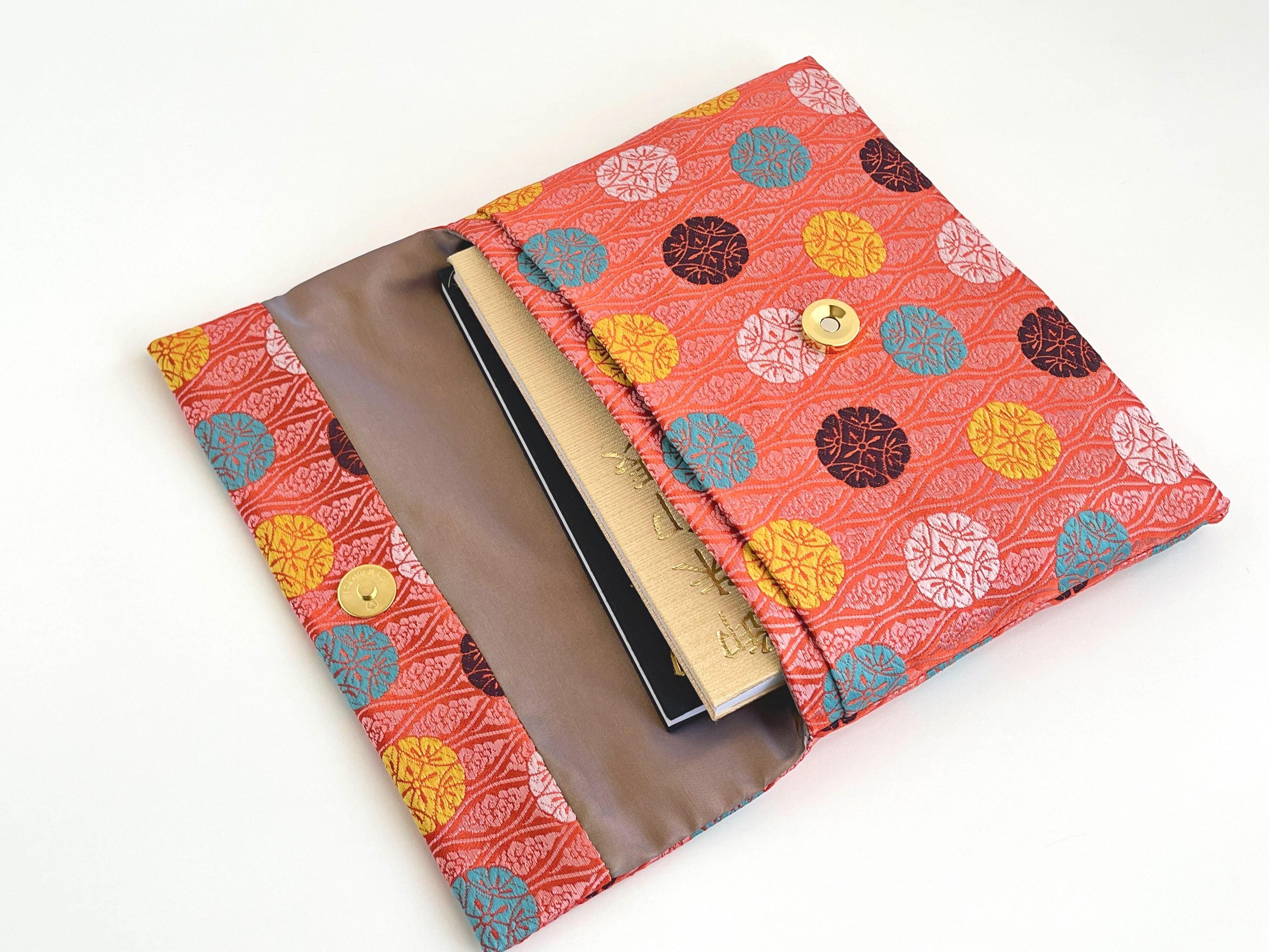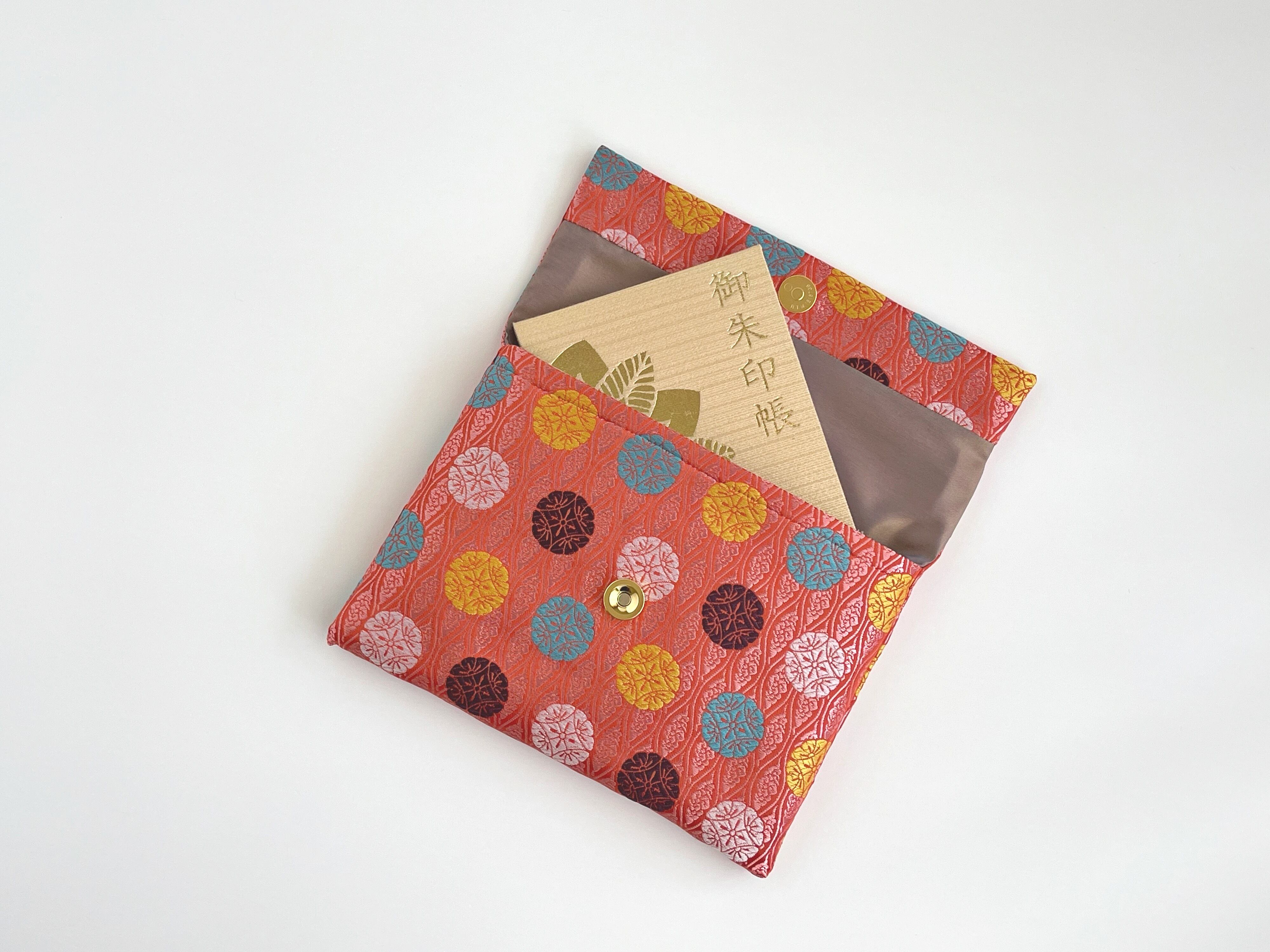 新作‼︎ 御朱印帳入れ 高級金襴…オレンジの紋《送料無料》