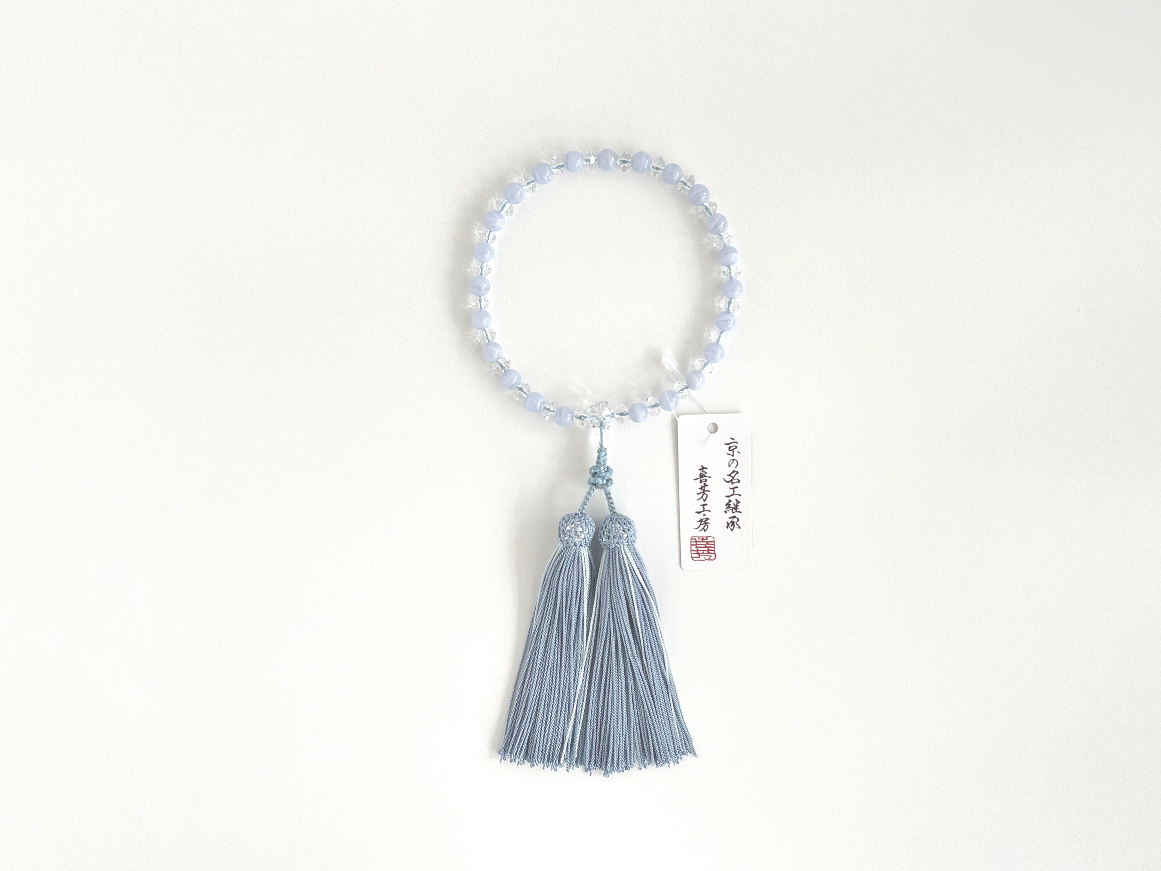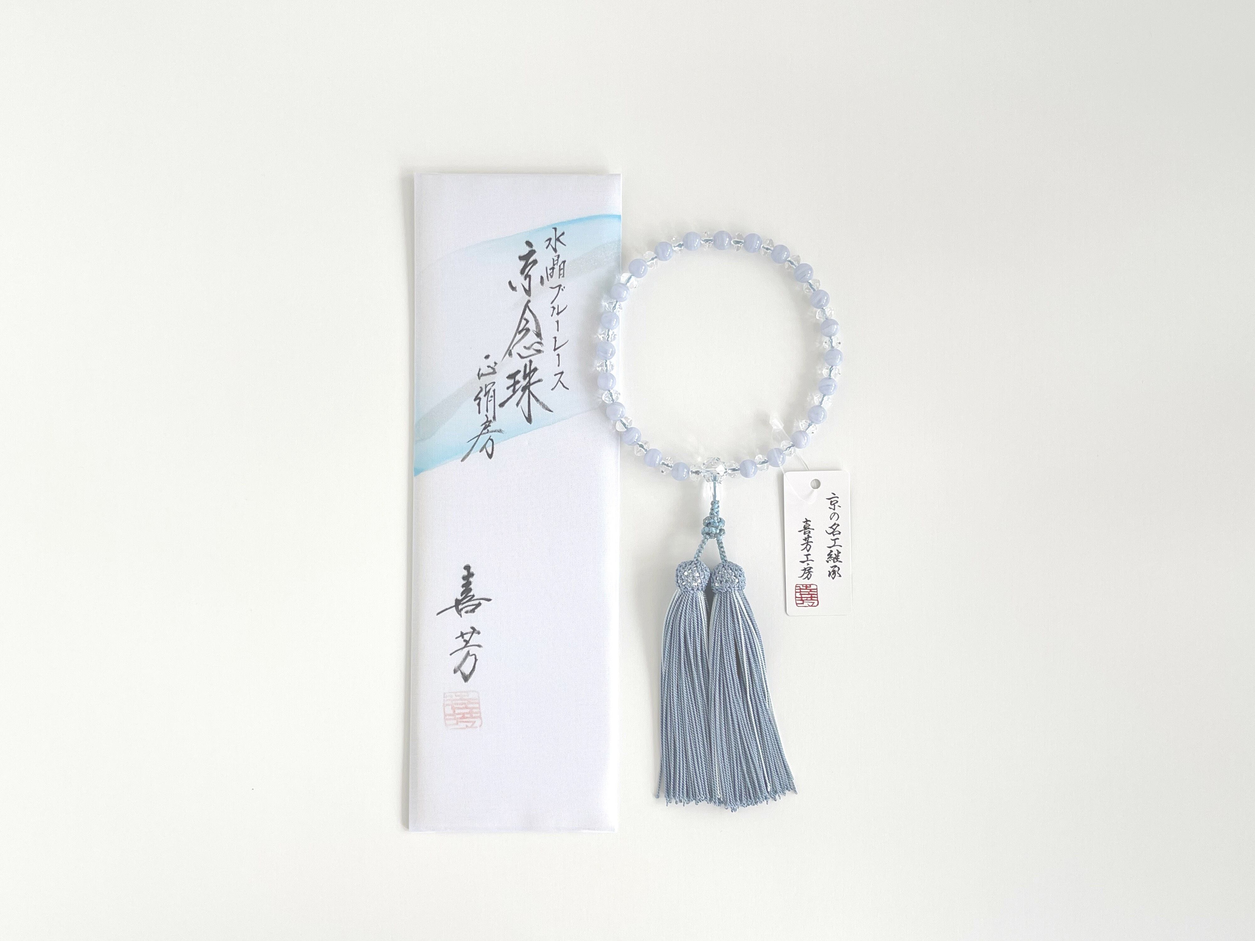 数珠【喜芳工房 京念珠】水晶ブルーレース すべての宗派で使える念珠 《送料無料》