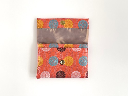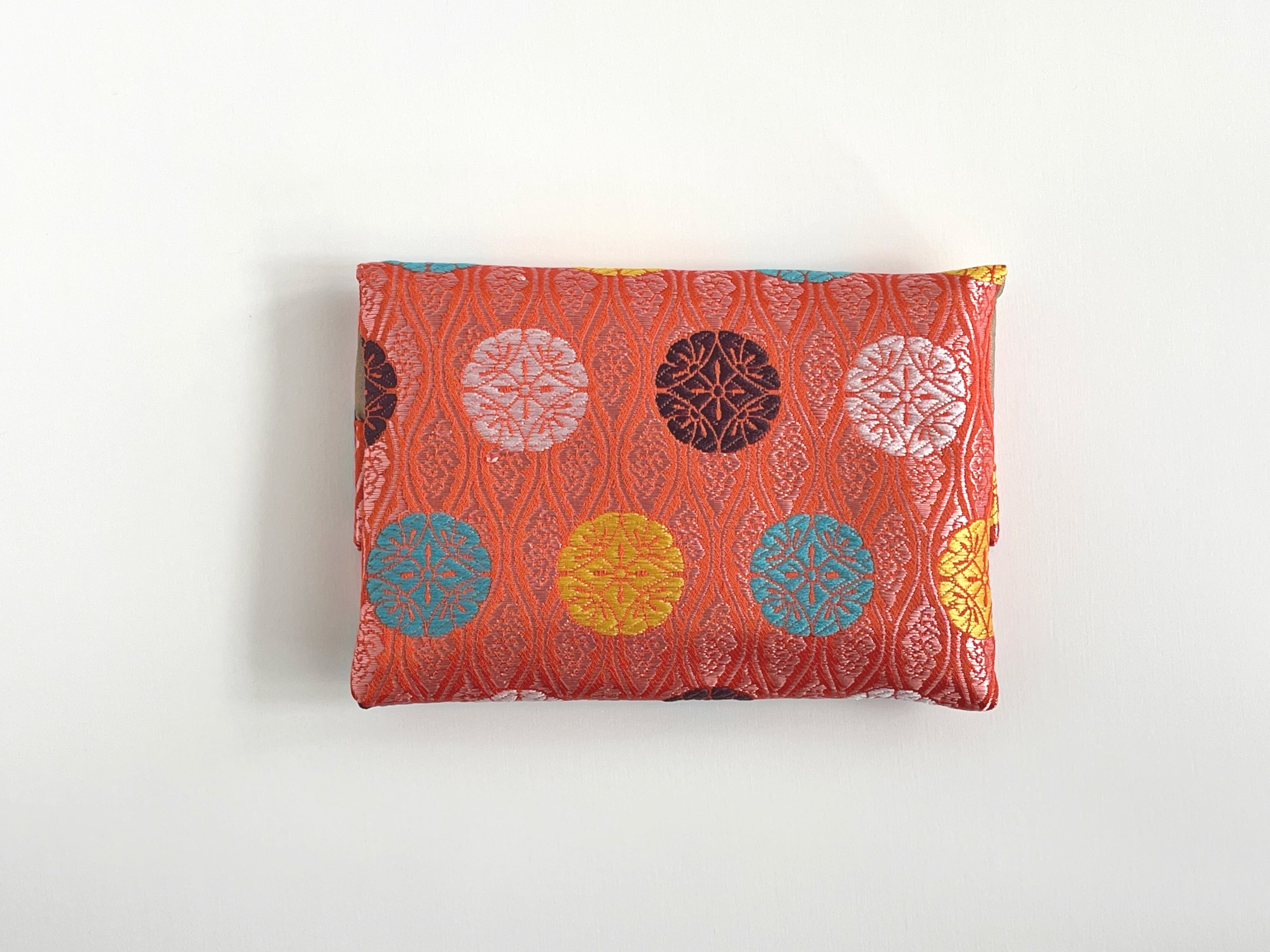 ✴︎✴︎アウトレット✴︎✴︎ お念珠入れ ポケット付き 高級金襴…オレンジの紋《送料無料》
