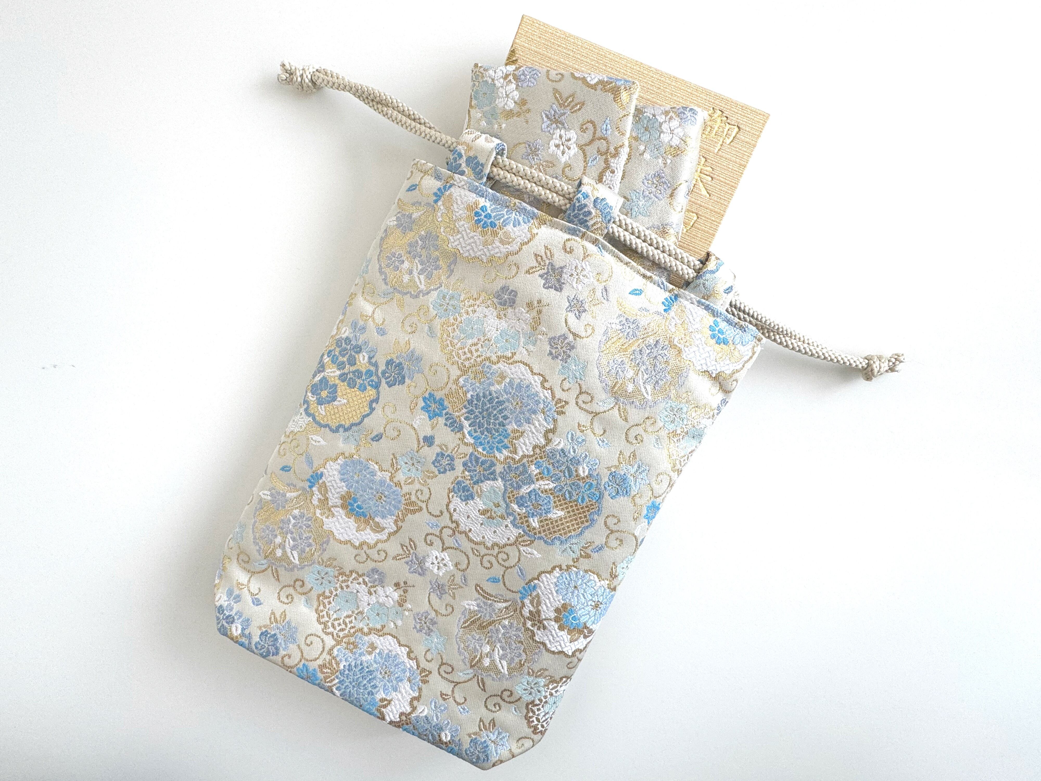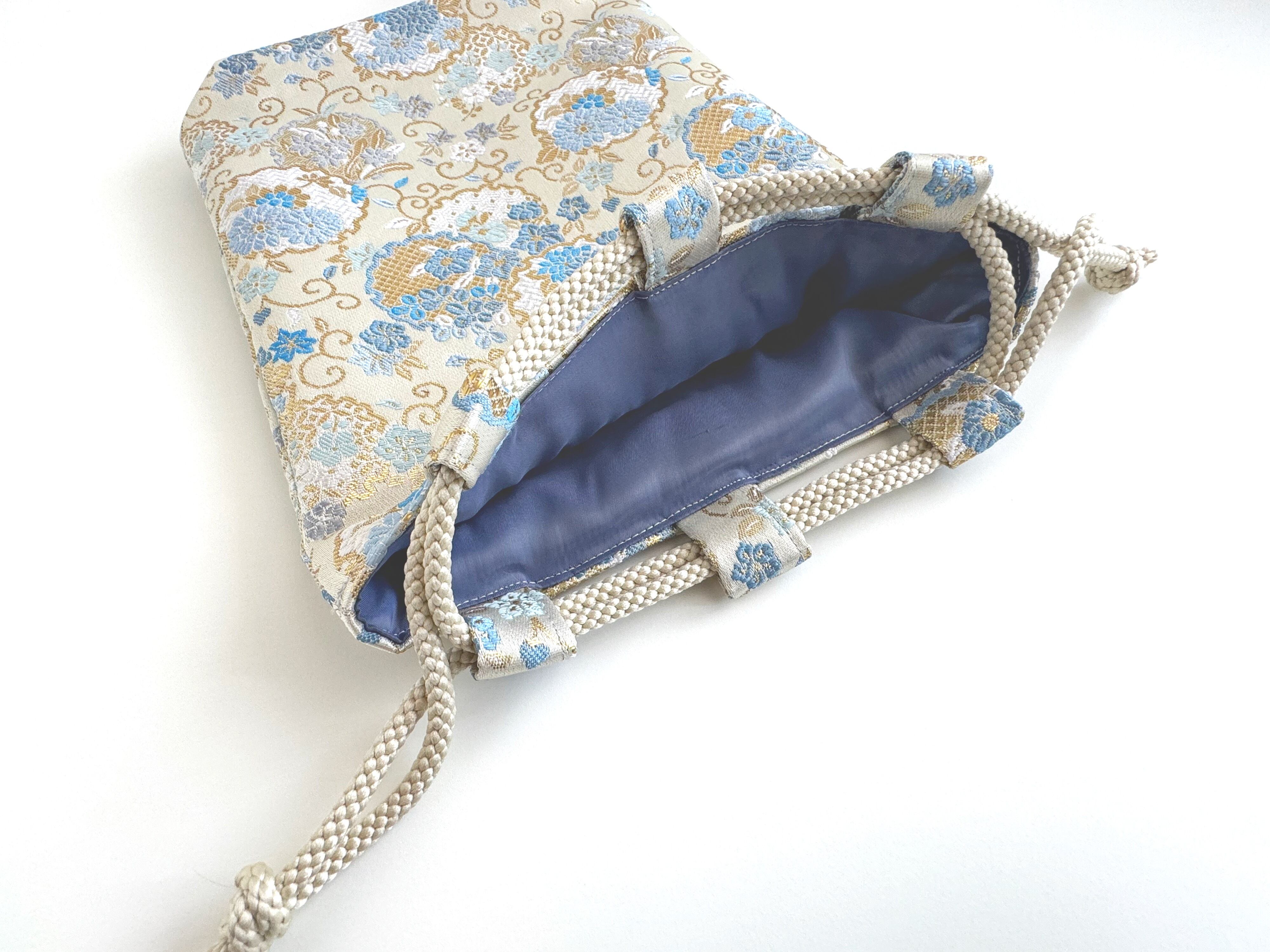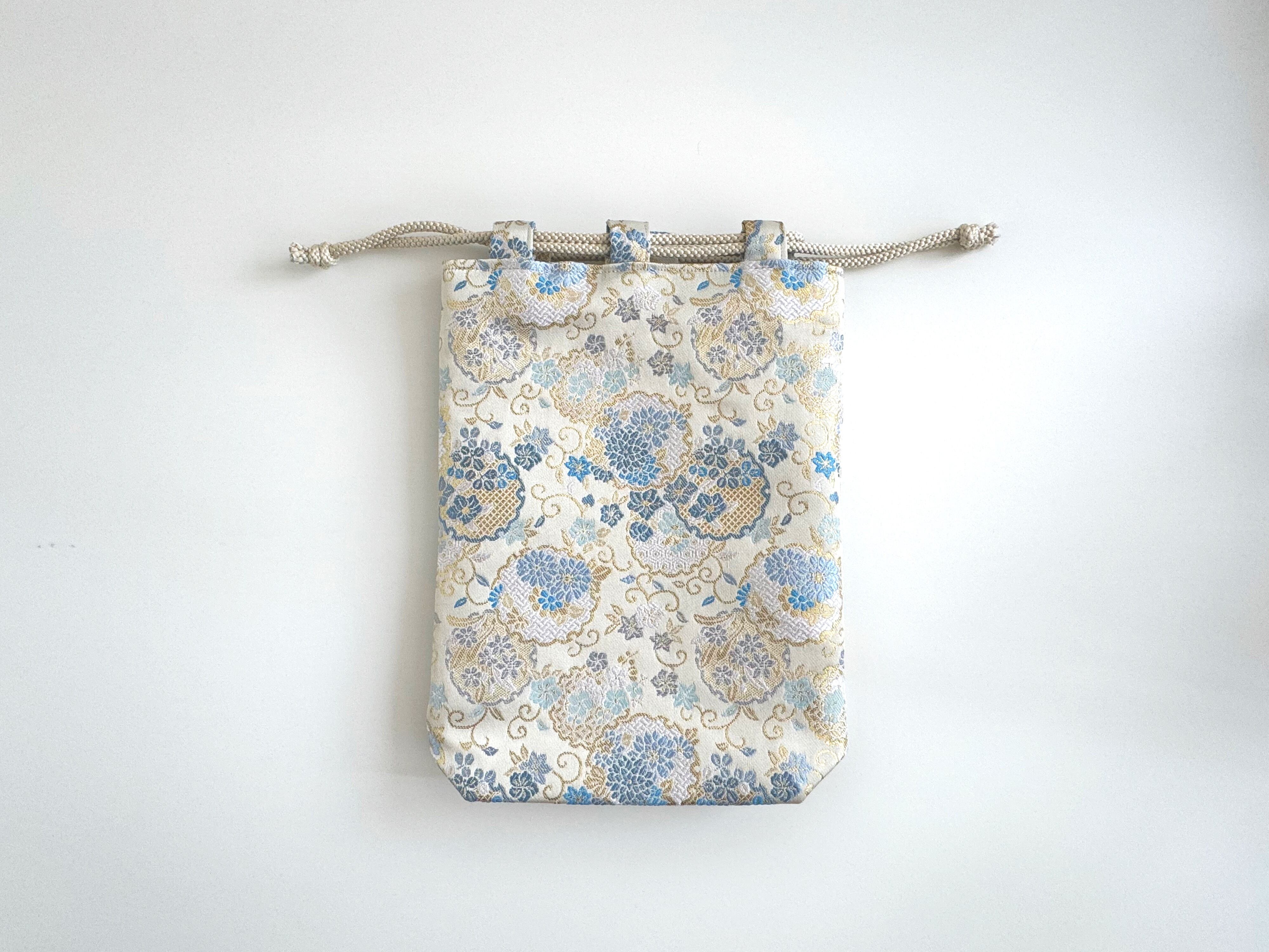 再販‼︎ 和柄巾着袋(大) 高級金襴…青の花畑《送料無料》