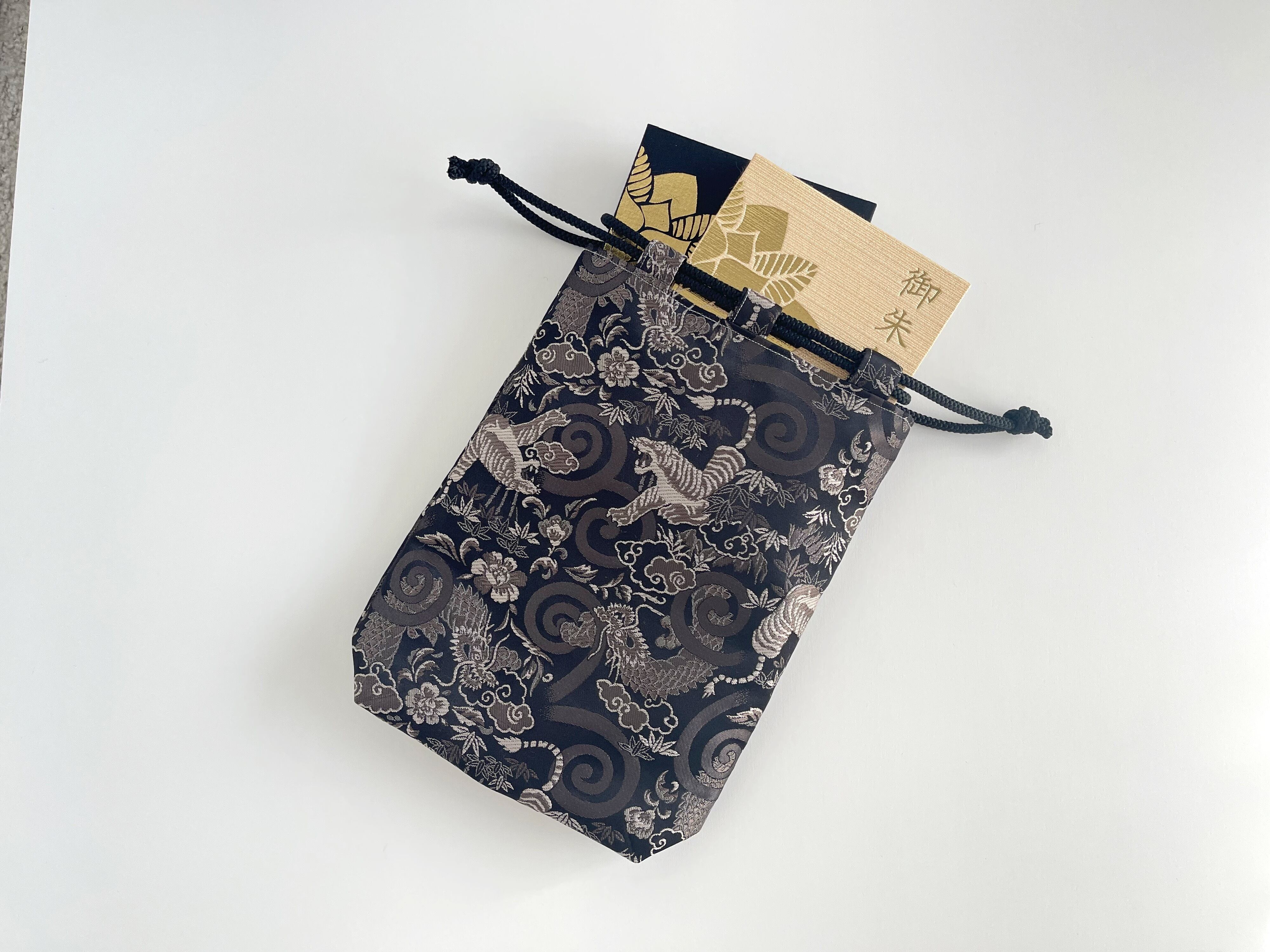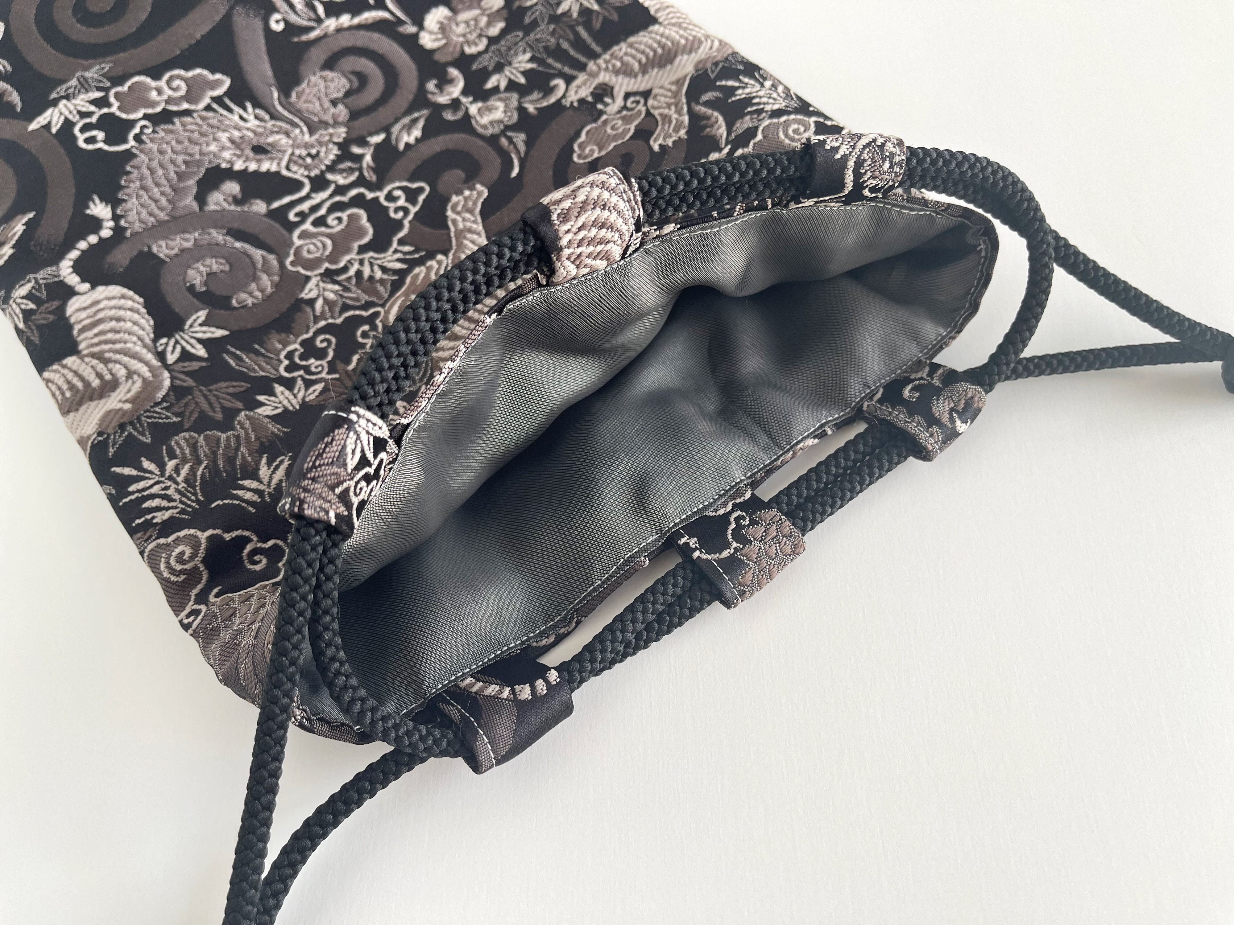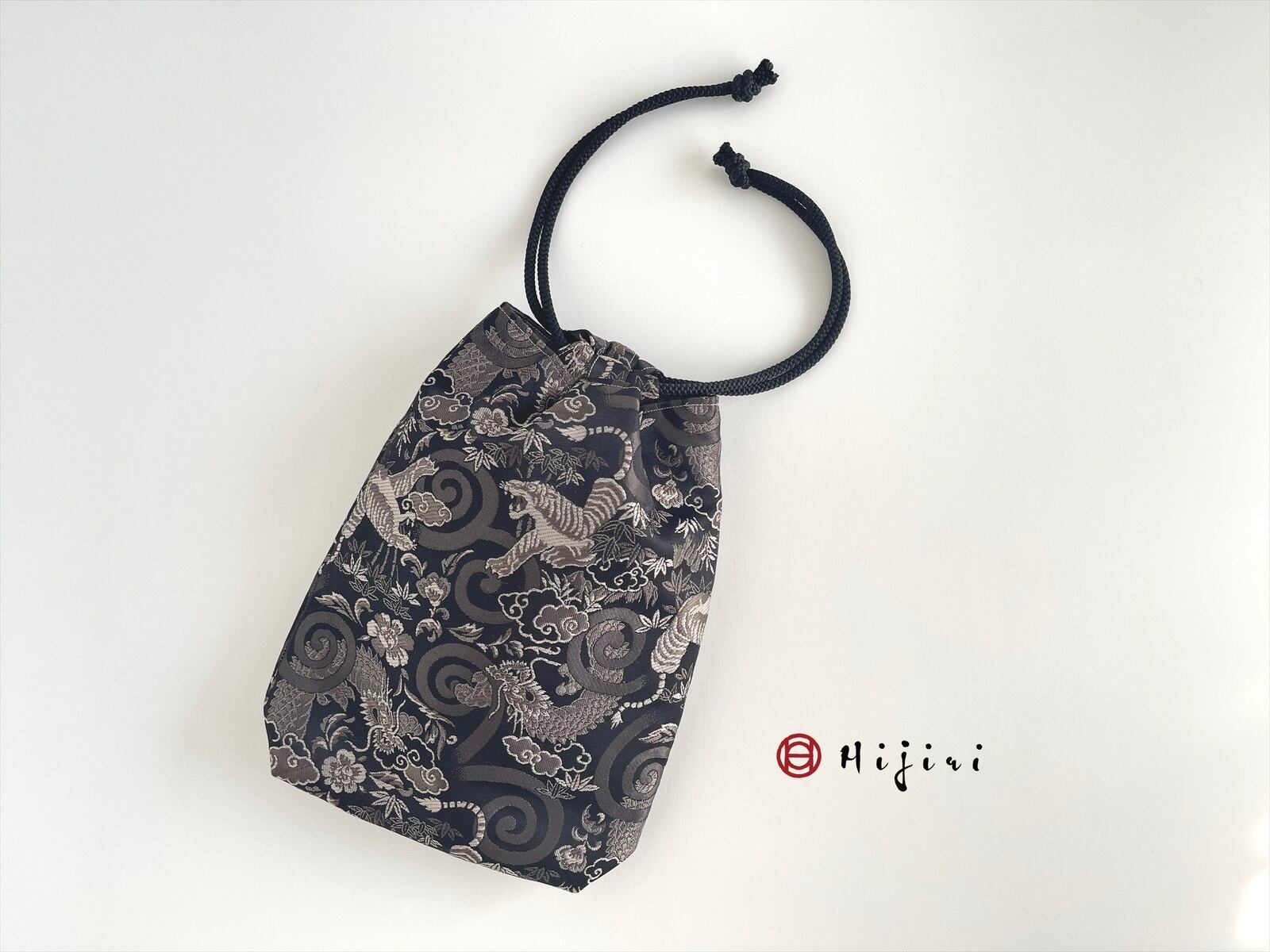 新作‼︎ 和柄巾着袋(大) 高級金襴…龍寅《送料無料》