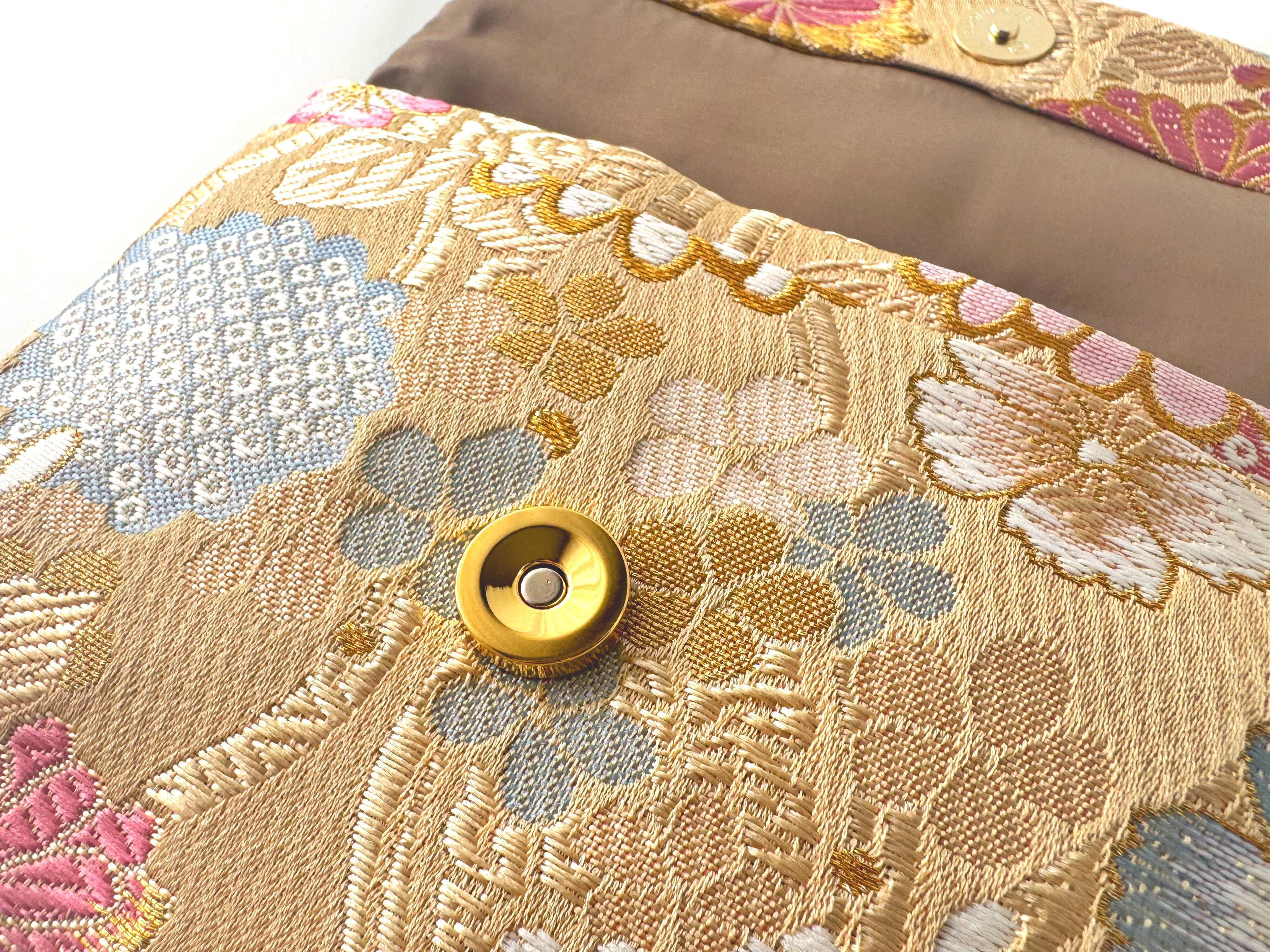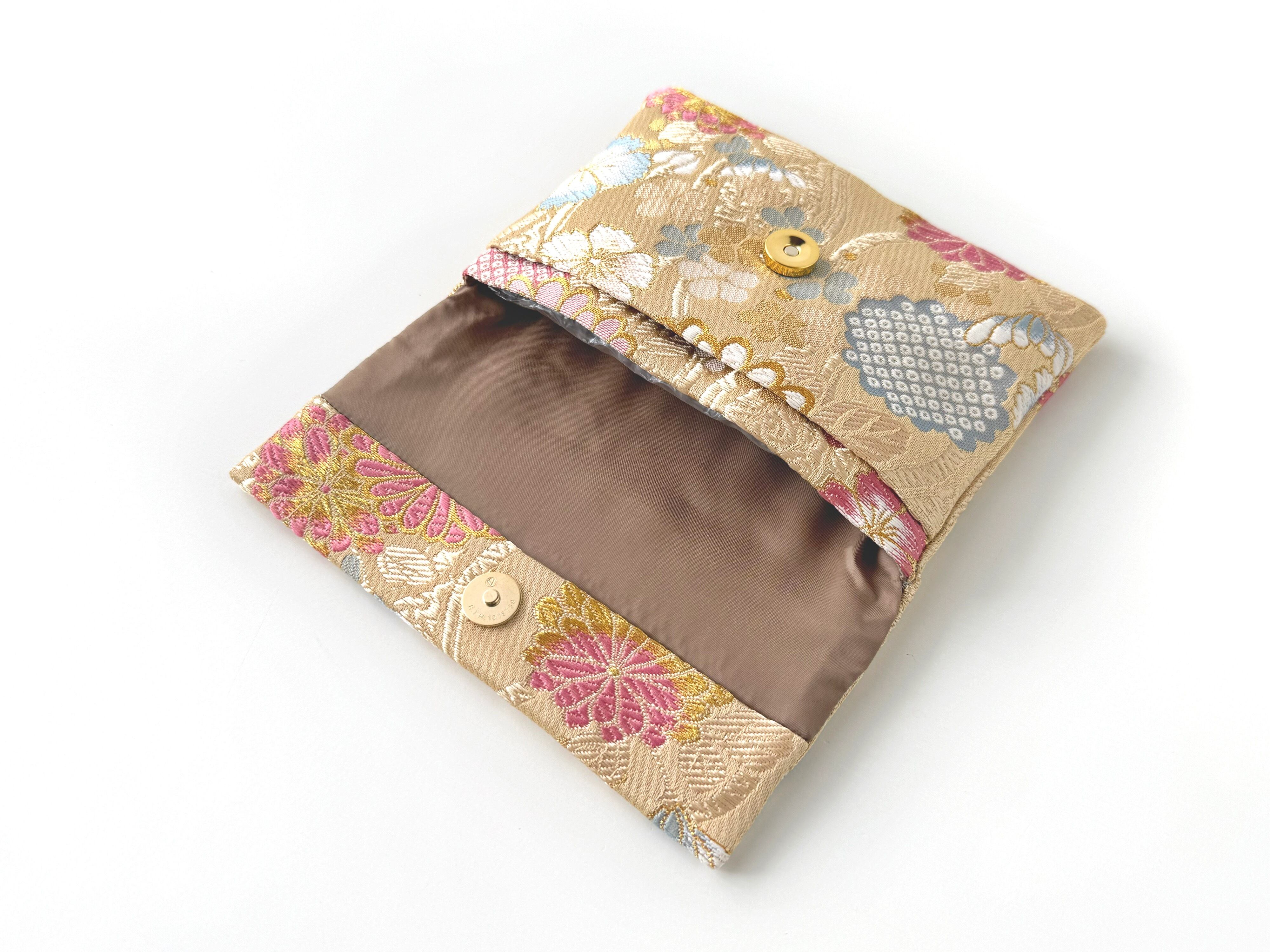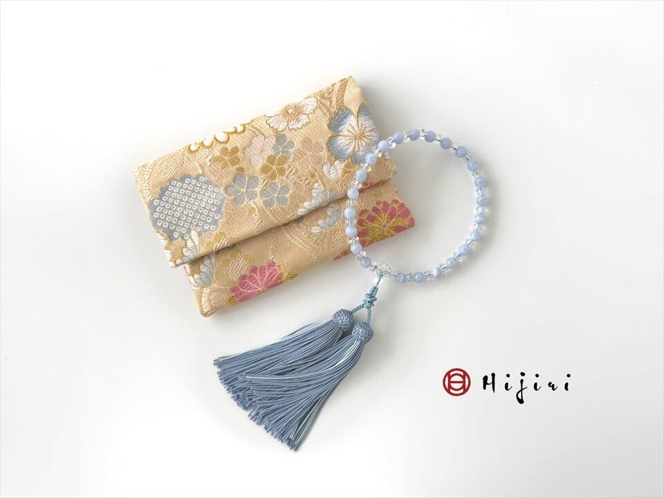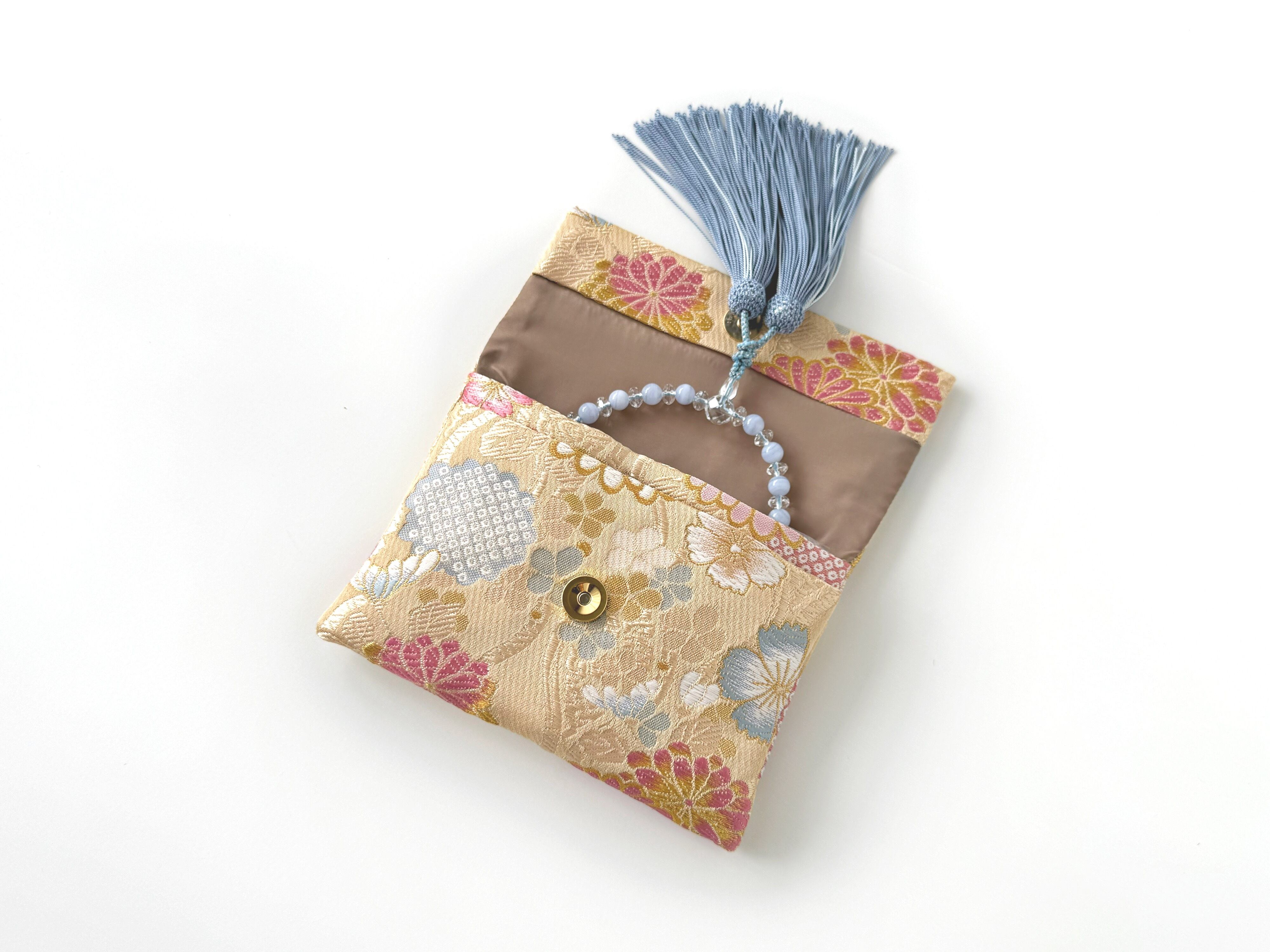 再販‼︎ お念珠入れ ポケット付き 高級金襴…菊桜鹿の子 ベージュ《送料無料》