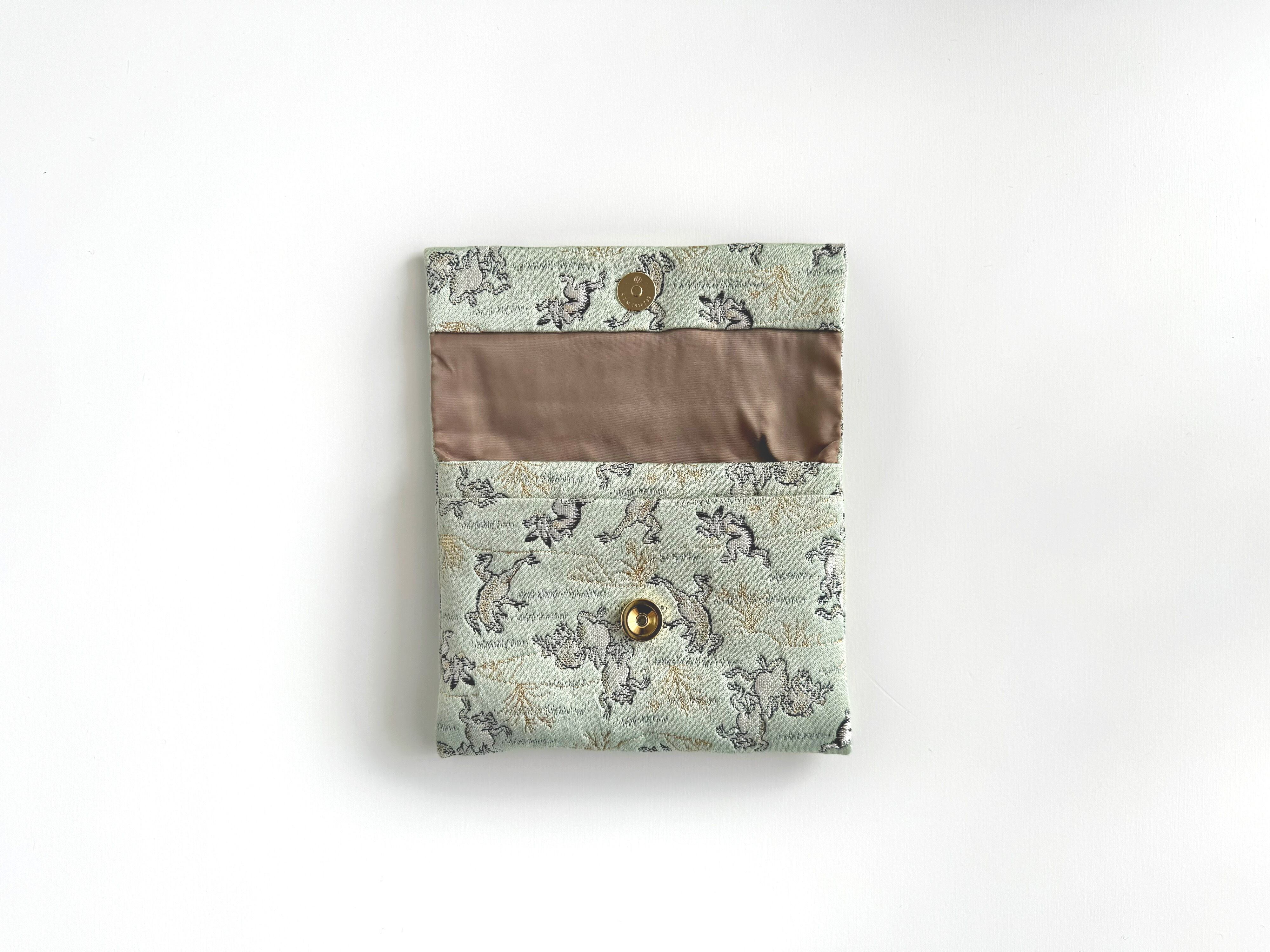 ✴︎✴︎アウトレット✴︎✴︎ お念珠入れ ポケット付き 高級金襴…グリーンの鳥獣戯画《送料無料》