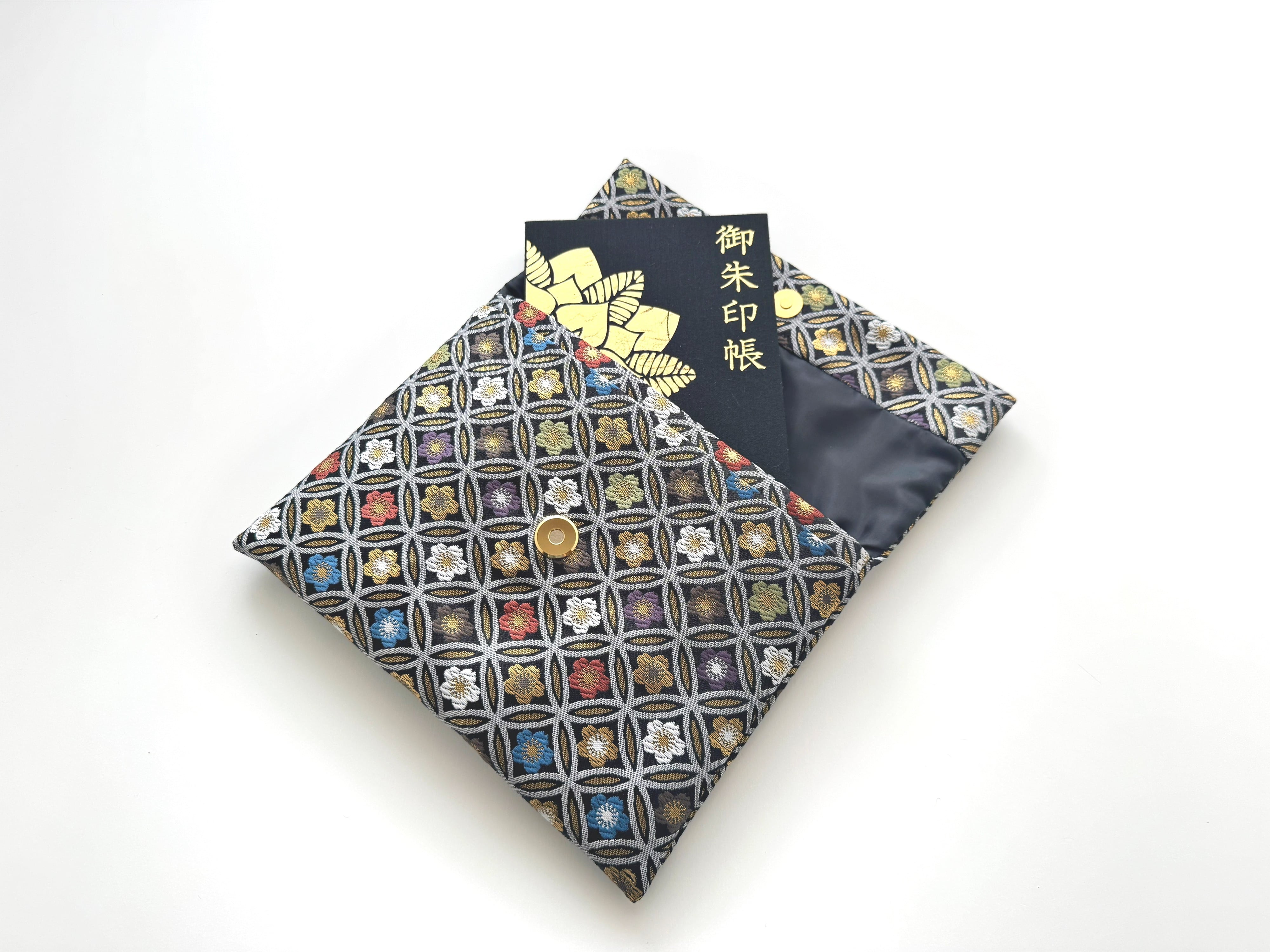 再販‼︎ 御朱印帳入れ 高級金襴…さくら七宝 黒《送料無料》